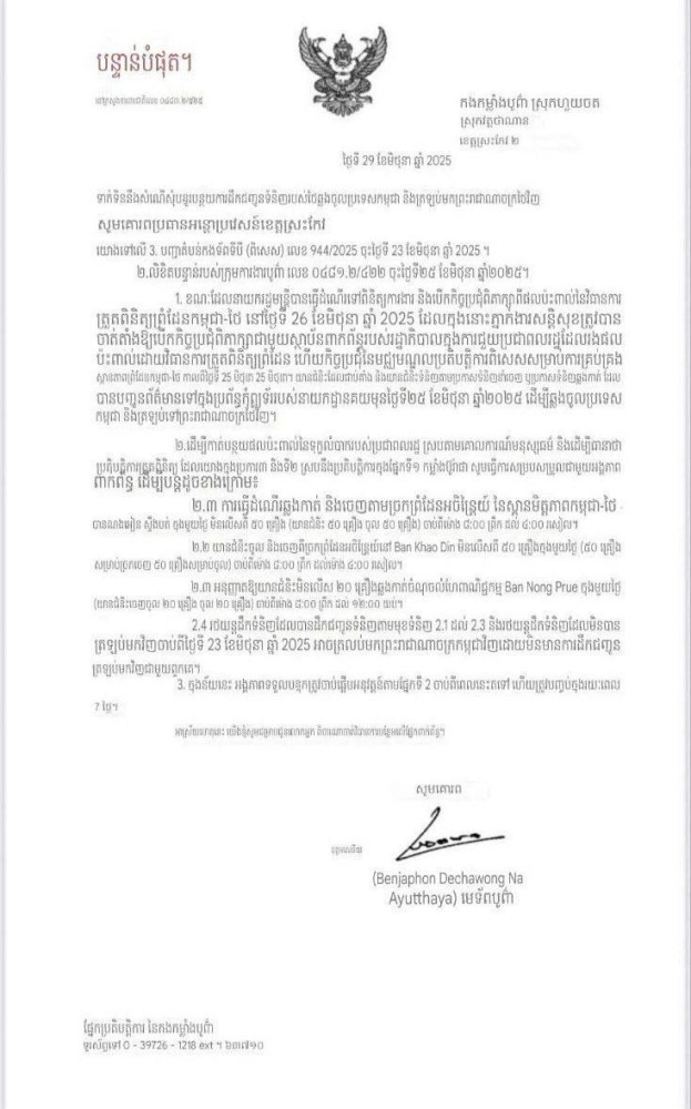 “1. Cambodia fully acknowledges the challenges faced by both Cambodian and Thai citizens as a result of the border closure. This is why we had refrained from implementing such a measure first, even after the tensions in the Mom Bei area in late May 2025. Our aim has never been to disrupt cross-border travel or trade between the two nations.