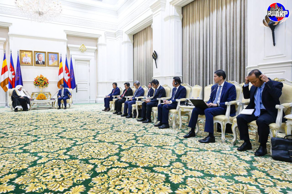 Cambodia’s Prime Minister Samdech Moha Borvor Thipadei Hun Manet (R, Pic. 1) poses for a photo with visiting H.E. Abdullah bin Mohammed bin Ibrahim Al-Sheikh, Speaker of the Shura Council of Saudi Arabia, prior to their courtesy meeting at the Peace Palace in Phnom Penh this morning.