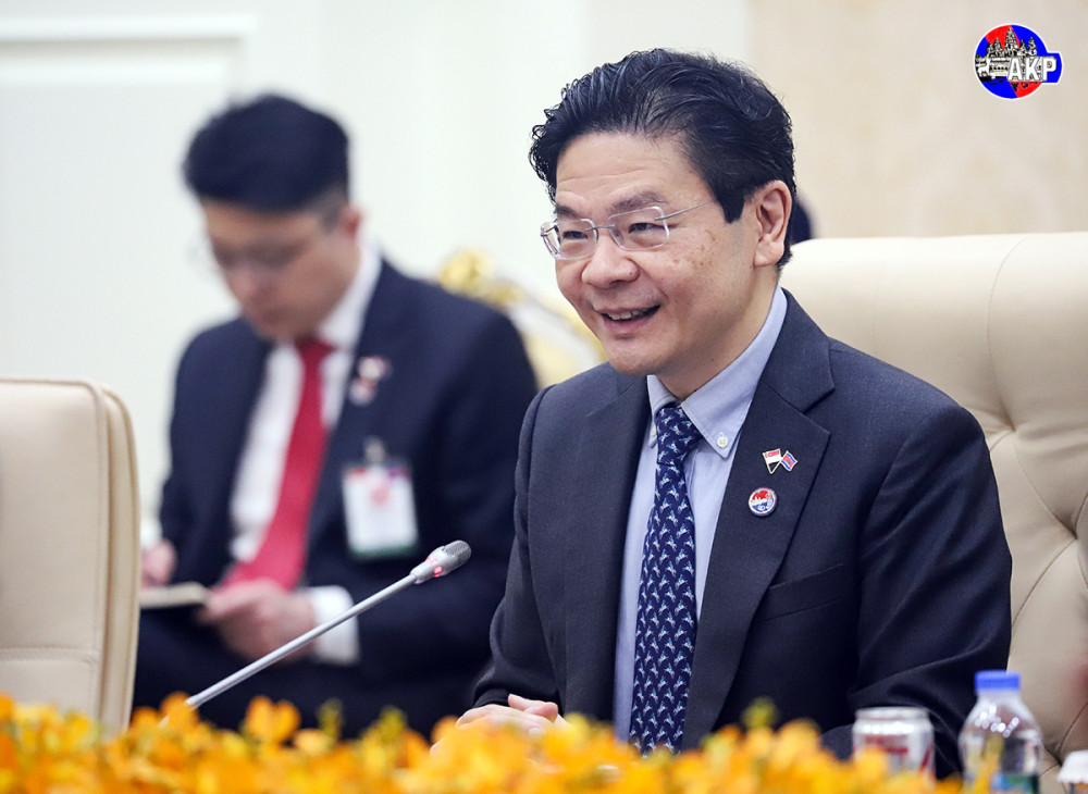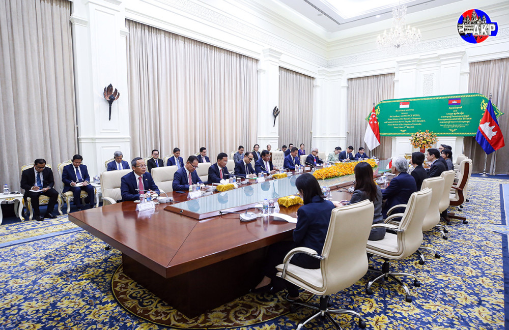 Samdech Moha Borvor Thipadei Hun Manet (Pic. 1), Prime Minister of the Kingdom of Cambodia, holds a bilateral meeting with visiting H.E. Lawrence Wong (Pic. 2), Prime Minister and Minister for Finance of the Republic of Singapore, at the Peace Palace in Phnom Penh this morning.