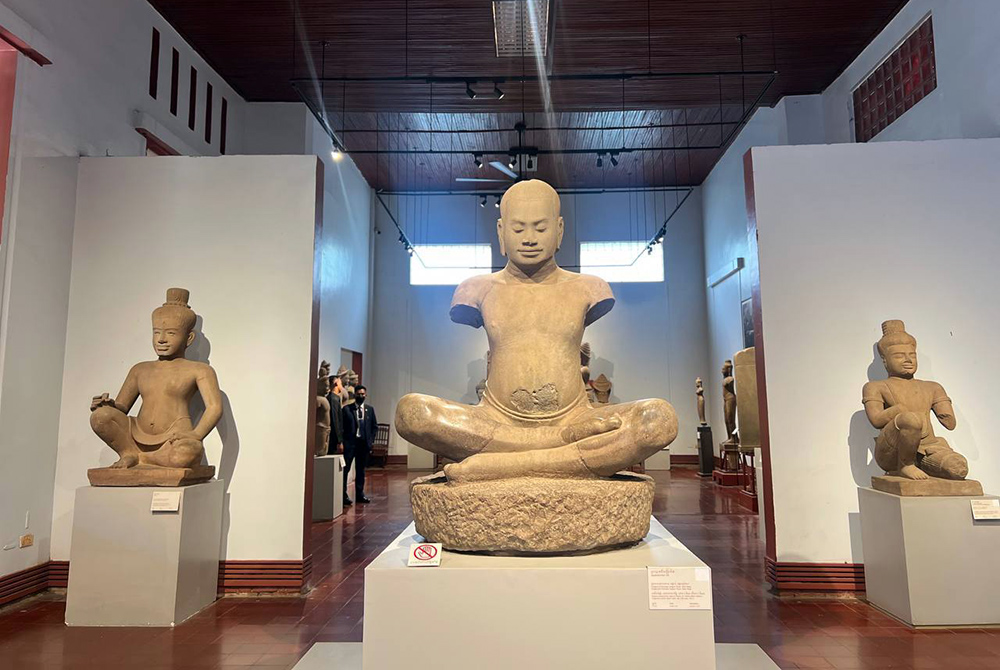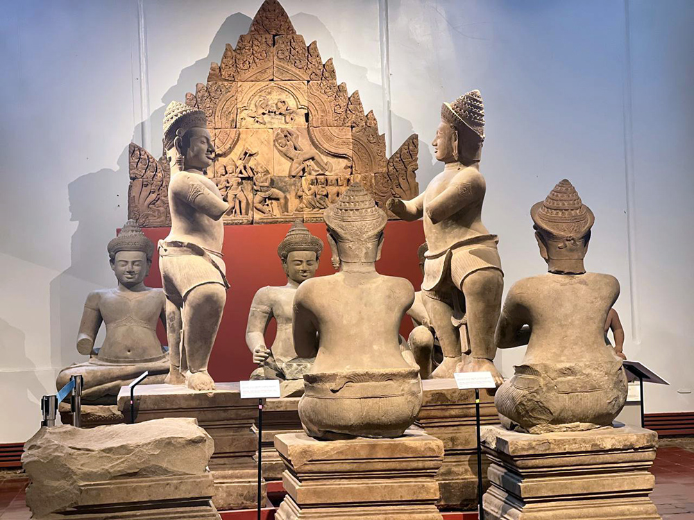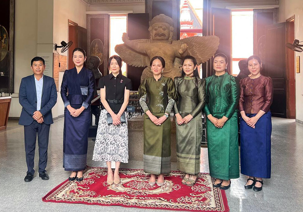Mrs. Tze Lui LOO (L, Pic. 1), Spouse of Singapore Prime Minister H.E. Lawrence Wong, accompanied by Lok Chumteav Dr. Pich Chanmony (2nd L, Pic. 1), Spouse of Cambodian Prime Minister Samdech Thipadei Hun Manet, visits the National Museum of Cambodia in Phnom Penh This afternoon.