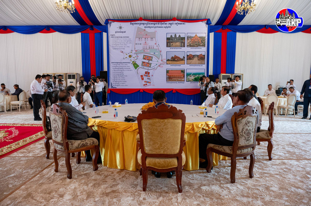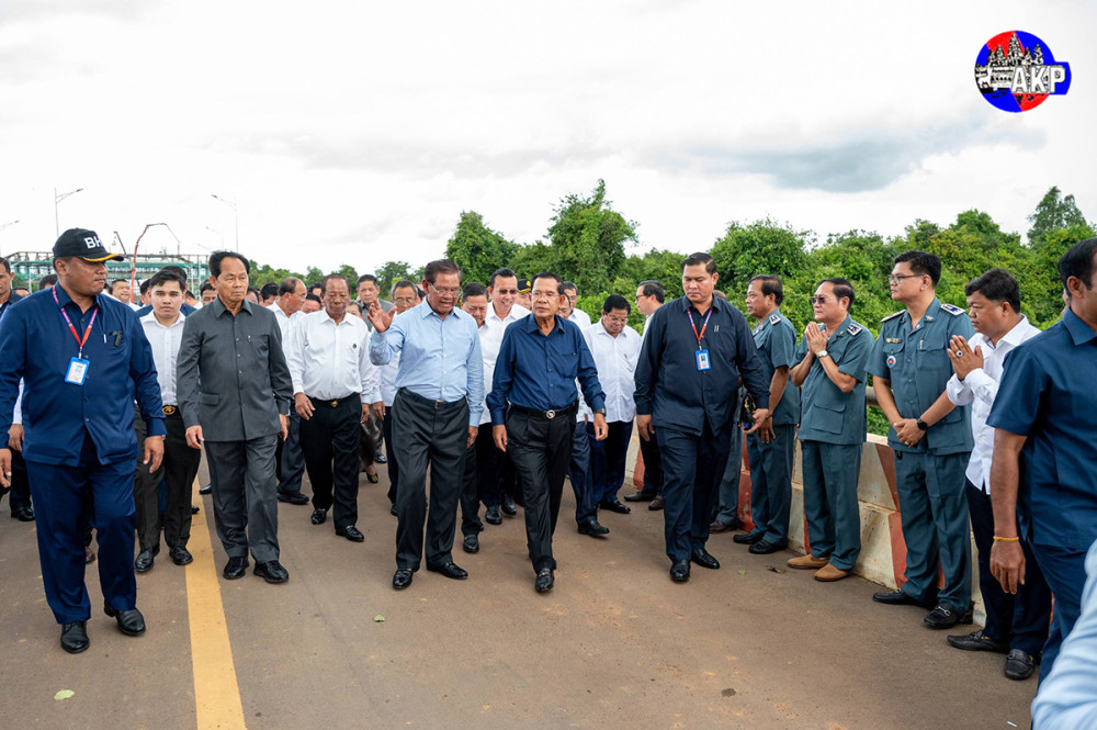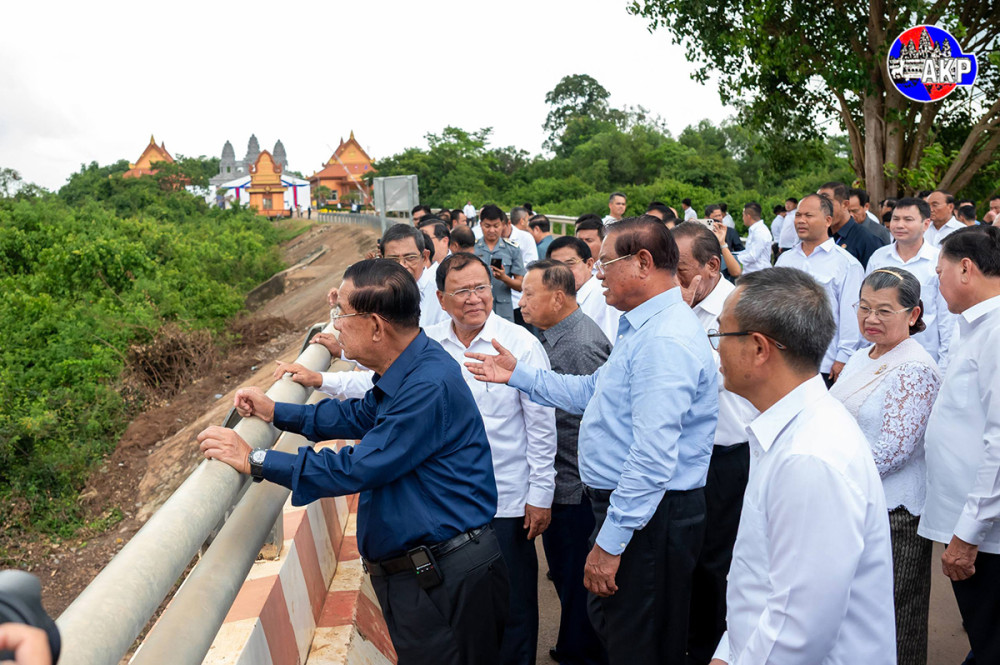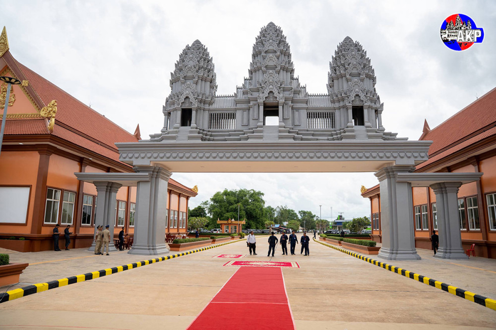 Samdech Akka Moha Sena Padei Techo Hun Sen (C, Pic. 1), President of the Supreme Privy Council to His Majesty the King and President of the Senate of Cambodia, visits the Cambodia-Vietnam Meun Chey international border gate in Meun Chey village, Krabao commune, Kamchay Mear district, Prey Veng province, this afternoon.