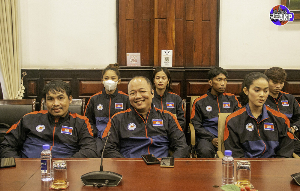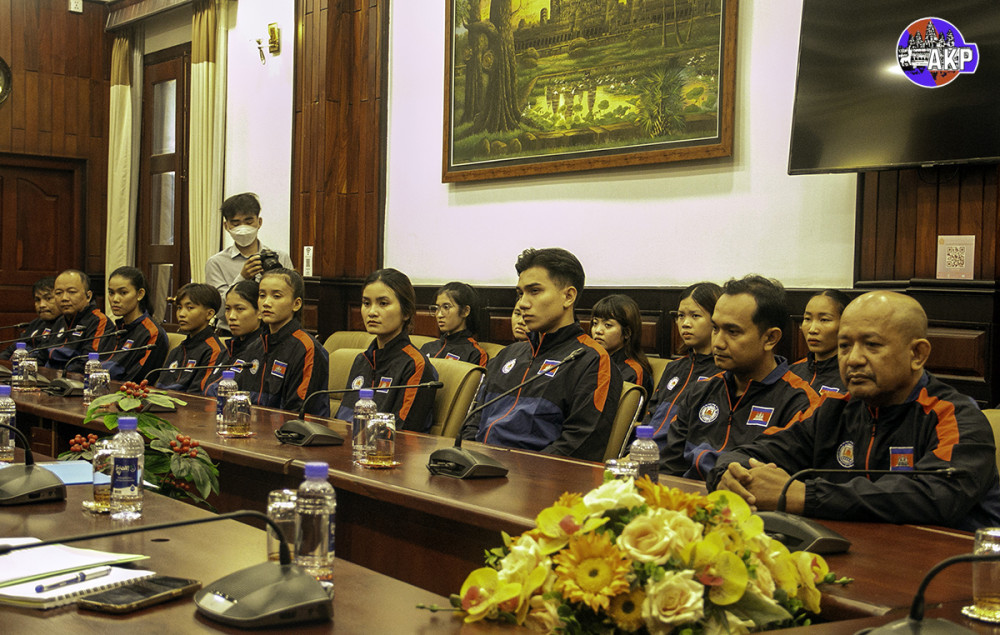 H.E. Dr. Hang Chuon Naron (Pic. 1), Deputy Prime Minister and Minister of Education, Youth and Sports, receives at the ministry this morning a Cambodian sports delegation before their departure to participate in the 32nd FISU World University Games 2025 in Rhine-Ruhr, Germany.