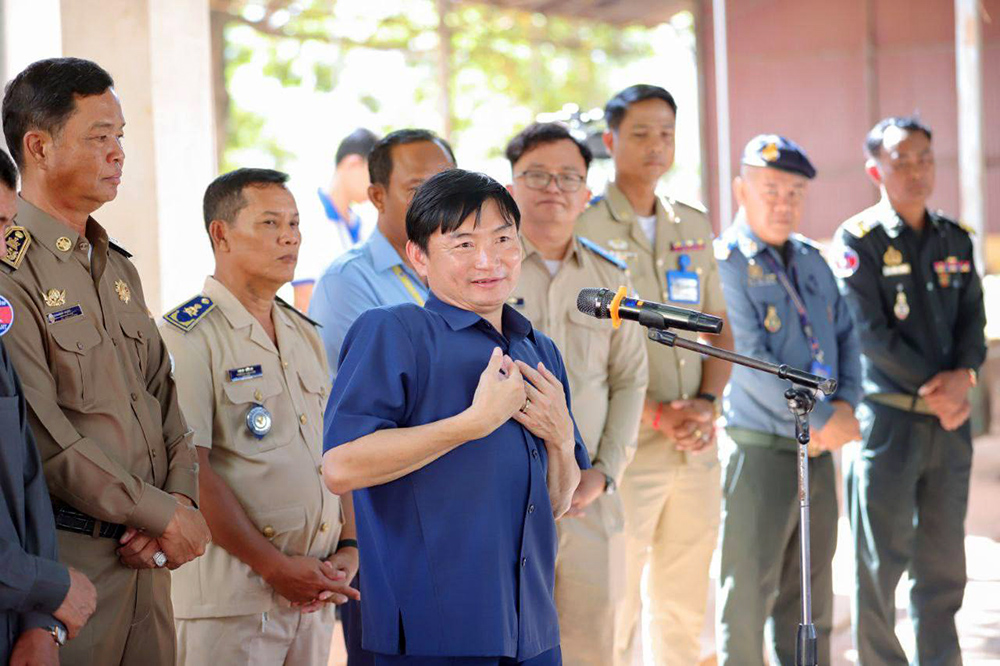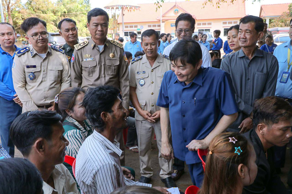 H.E. Heng Sour (Pic. 1), Minister of Labour and Vocational Training, delivers his remarks while he was presiding over the opening ceremony of the Job Forum, organised by the National Employment Agency (NEA) in Kampong Siem district, Kampong Cham province on July 7 to offer job opportunities to job seekers, especially workers who have recently returned from Thailand.