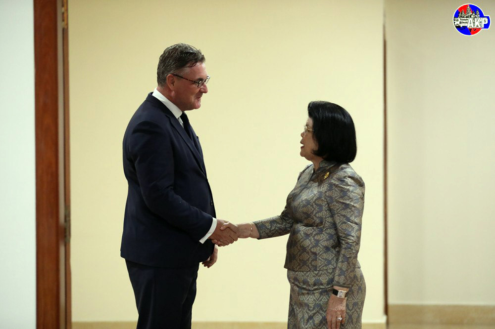 Samdech Maha Rathsapheathika Thipadei Khuon Sudary, President of the National Assembly of the Kingdom of Cambodia, received here on July 7 a farewell courtesy call from H.E. Martin Vávra, Ambassador Extraordinary and Plenipotentiary of the Czech Republic to Cambodia, at the National Assembly Palace on Monday.