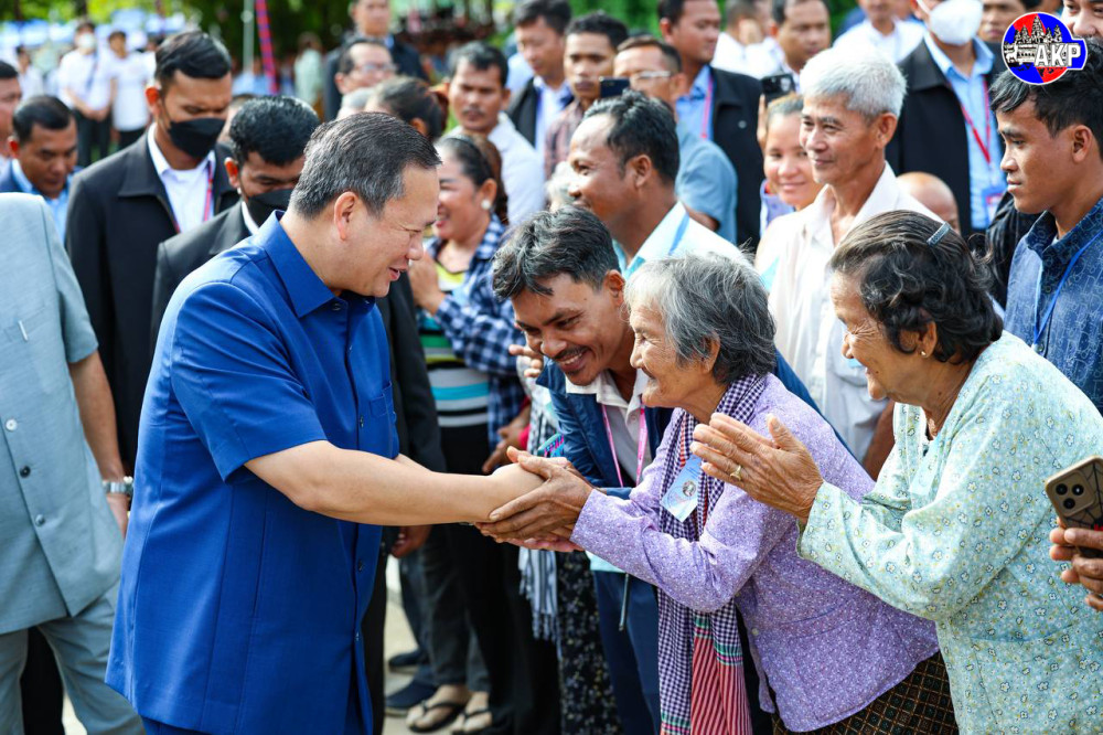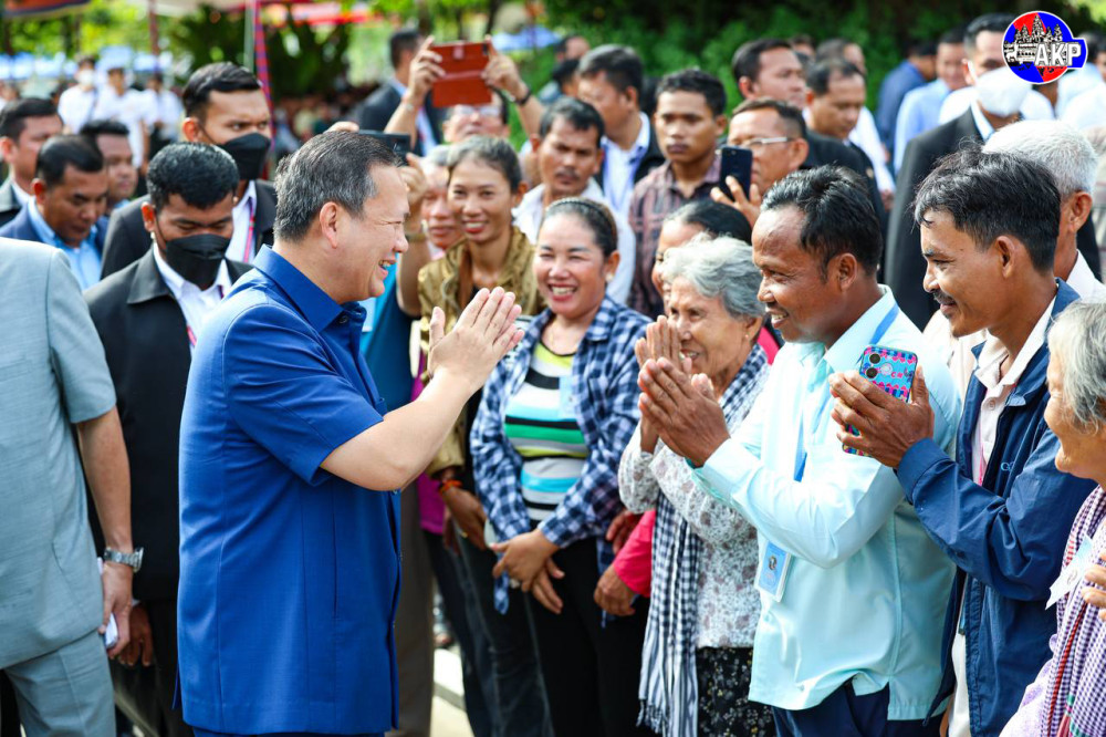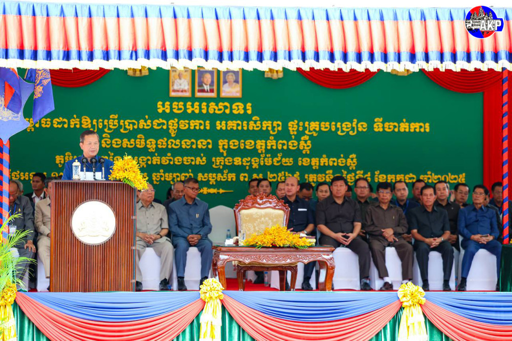 Prime Minister Samdech Moha Borvor Thipadei Hun Manet (Pic. 1) addresses the participants while he was presiding over the official inauguration ceremony of school buildings, teacher housing, administrative buildings and other related achievements, held in Kraing Ponlei village, Sangkat Veang Chas, Oudong Mechey city in Kampong Speu province this morning.