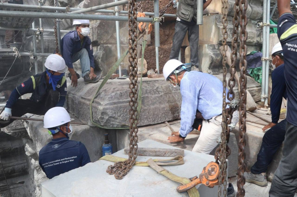 Restoration Project for Northeast Corner of Angkor Wat's Bakan Tower is Making Remarkable Progress