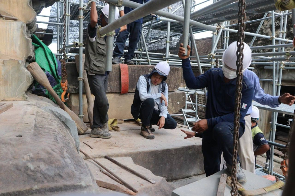 The restoration project for the northeast corner of Angkor Wat's Bakan Tower is progressing well, thanks to the collaboration between the APSARA National Authority and the Korean Heritage Agency.