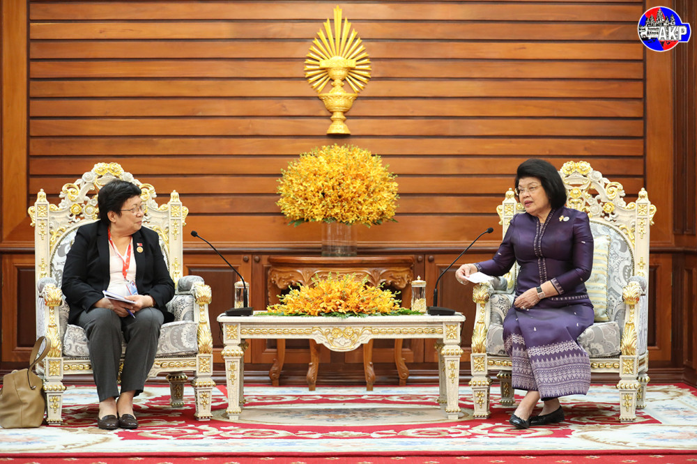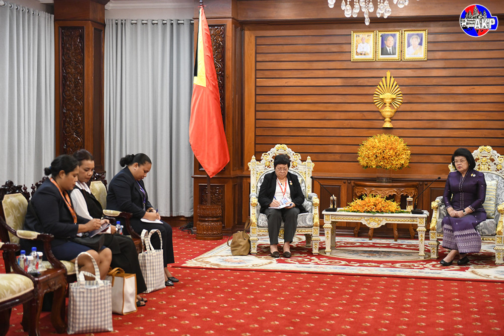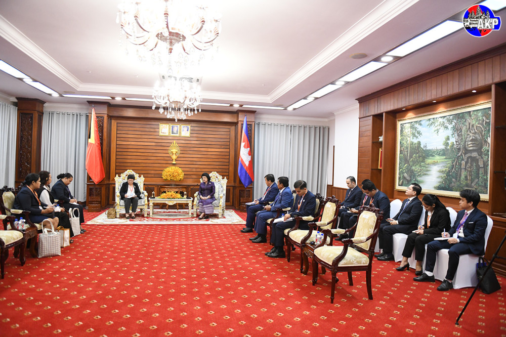 Samdech Maha Rathsapheathika Thipadei Khuon Sudary (R, Pic. 1), President of the National Assembly of the Kingdom of Cambodia, receives a courtesy call from H.E. Maria Fernanda Lay, President of the National Parliament of the Democratic Republic of Timor-Leste, at the National Assembly Palace in Phnom Penh this morning, on the sidelines of the 16th AIPA Caucus.