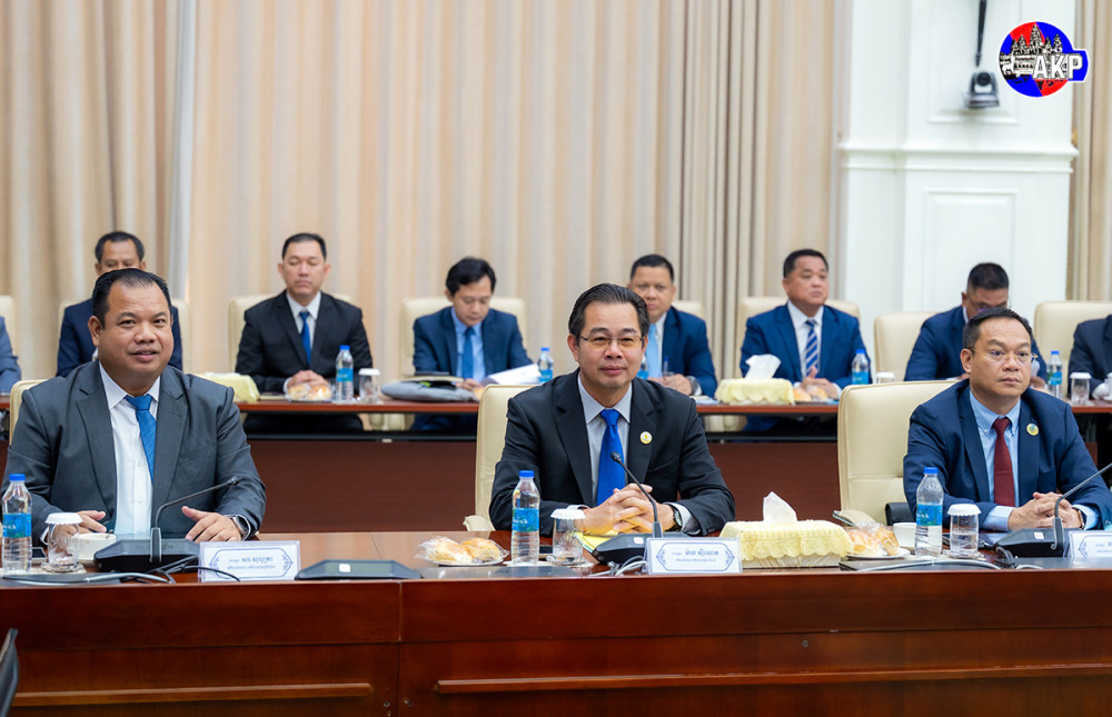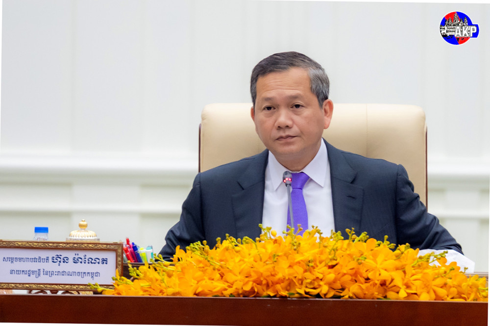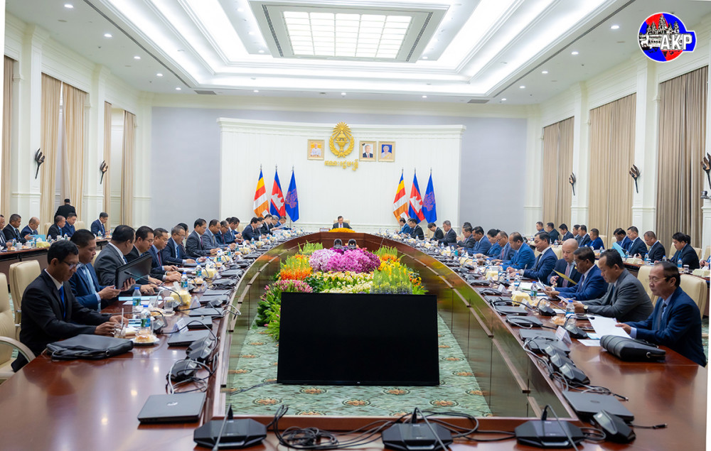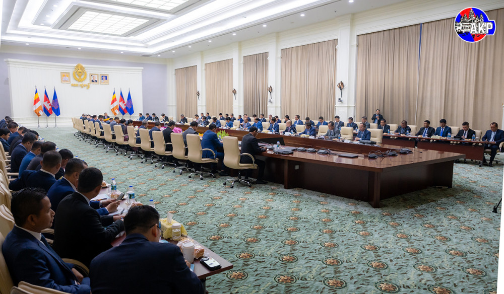 Prime Minister Samdech Moha Borvor Thipadei Hun Manet (Pic. 1) chairs at the Peace Palace here this morning a meeting with ministries, institutions, provincial and municipal administrations, provincial and municipal police chiefs, and provincial and municipal military police commanders to review the operations against online scams.