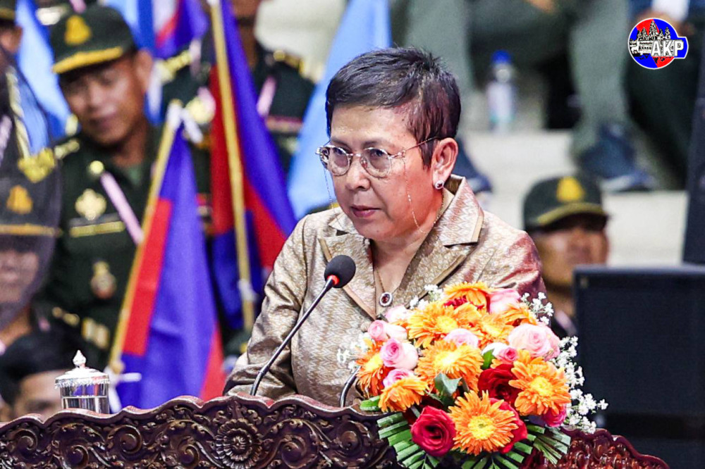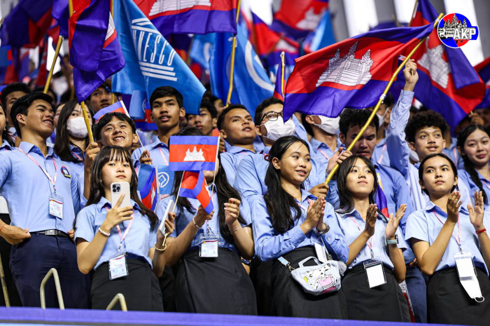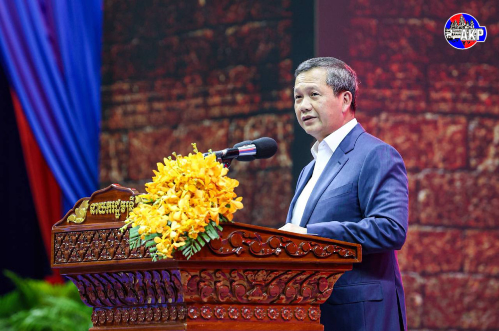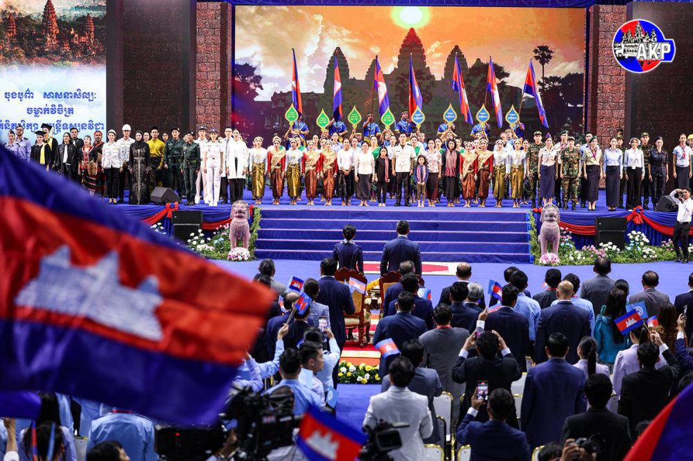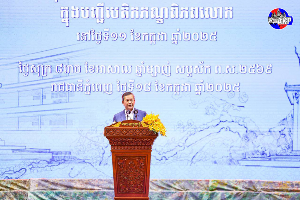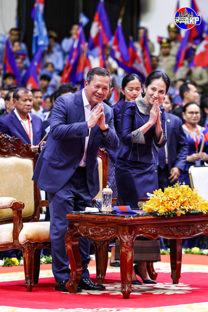 Cambodia’s Prime Minister Samdech Moha Borvor Thipadei Hun Manet (Pic. 1) delivers his remarks while he and his spouse, Lok Chumteav Dr. Pich Chanmony, preside over a grand ceremony at the National Olympic Stadium in Phnom Penh this afternoon to celebrate the inscription of the “Cambodian Memorial Sites: From Centres of Repression to Places of Peace and Reflection” on the UNESCO World Heritage List.