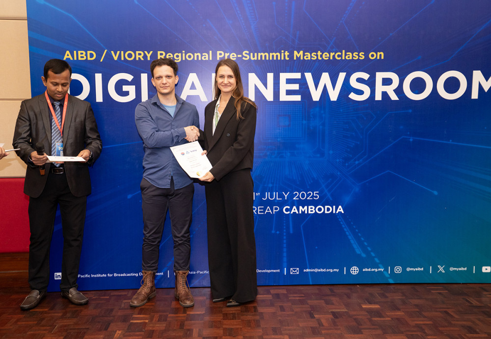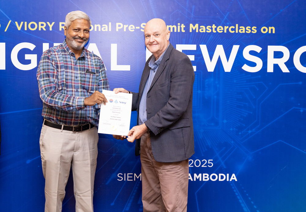 Participants Receive Certificates after Completing a Pre-Summit Workshop on Digital Newsrooms Masterclass in Siem Reap
