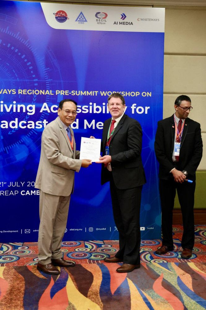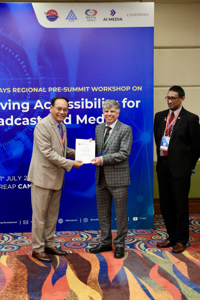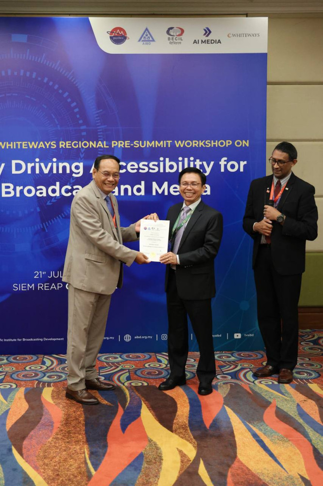 H.E. Pang Nath (Pic. 1), Undersecretary of State at the Ministry of Information and Permanent Vice-Chairman of the Secretariat of the 20th Asian Media Summit, delivers his closing remarks at the AIBD Regional Workshop on Technology Driving Accessibility for the Future Broadcast and Media, held this afternoon in Siem Reap province.