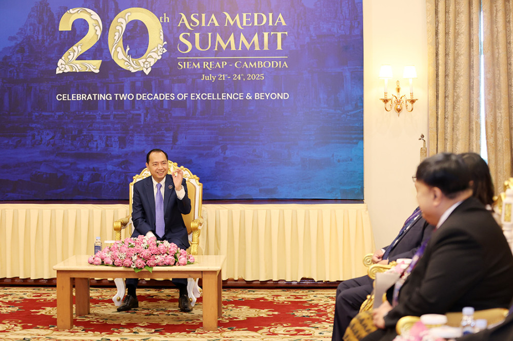 H.E. Neth Pheaktra (Pic. 1), Minister of Information of the Kingdom of Cambodia, warmly receives the distinguished delegates prior to the opening ceremony of the 20th Asia Media Summit themed: “Celebrating Two Decades of Excellence & Beyond” in Siem Reap provincial city this morning.