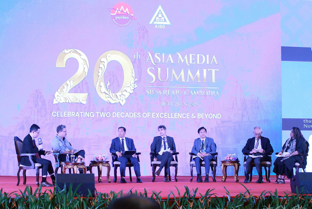National and International delegates (Pic. 1) take turn to share insights during the Session 3 of the 20th Asia Media Summit under the theme: “Information as a Public Good: Upholding Credibility & Empowering Democracy,” held in Siem Reap city this afternoon.