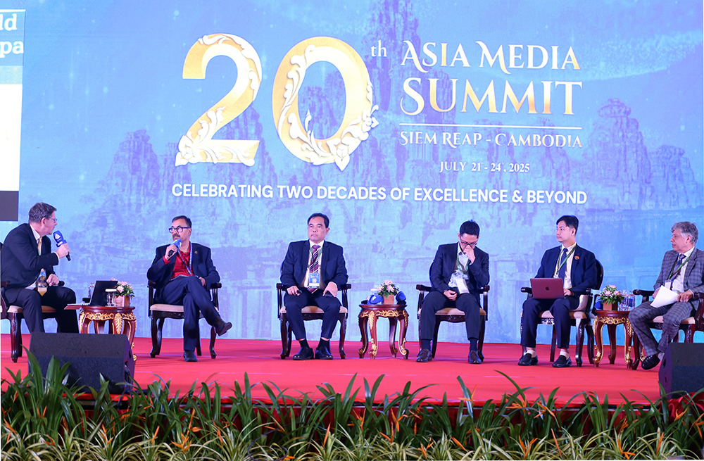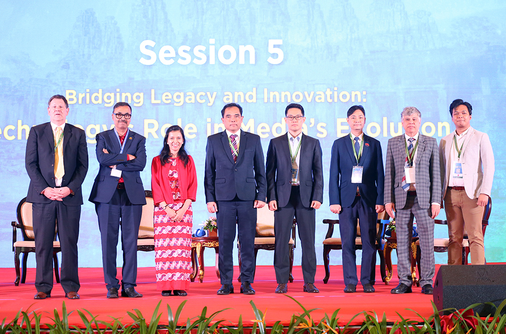Distinguished national and international speakers (Pic. 1) share their insights at the Session 5: Bridging Legacy & Innovation: Technology’s Role in Media’s Evolution, as part of the 20th Asia Media Summit in Siem Reap provincial city this afternoon.