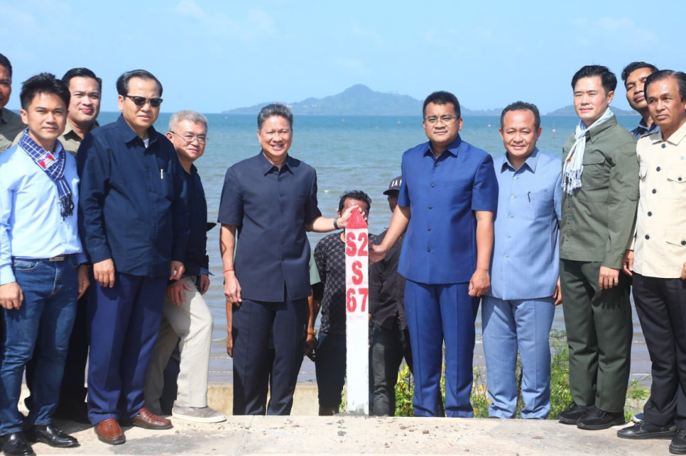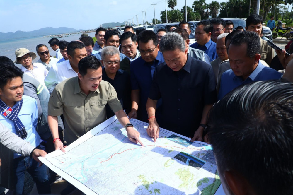 On July 6, H.E. Sun Chantol, Deputy Prime Minister and First Vice President of the Council for the Development of Cambodia (CDC), accompanied by H.E. Peng Pornea, Minister of Public Works and Transport, and other relevant officials, conducted a site inspection of land demarcation and verification in Angkol commune, Damnak Chang-er district, Kep province, after similar visits to Kandal, Takeo, and Kampot.