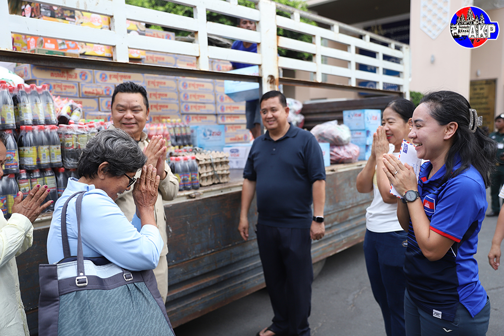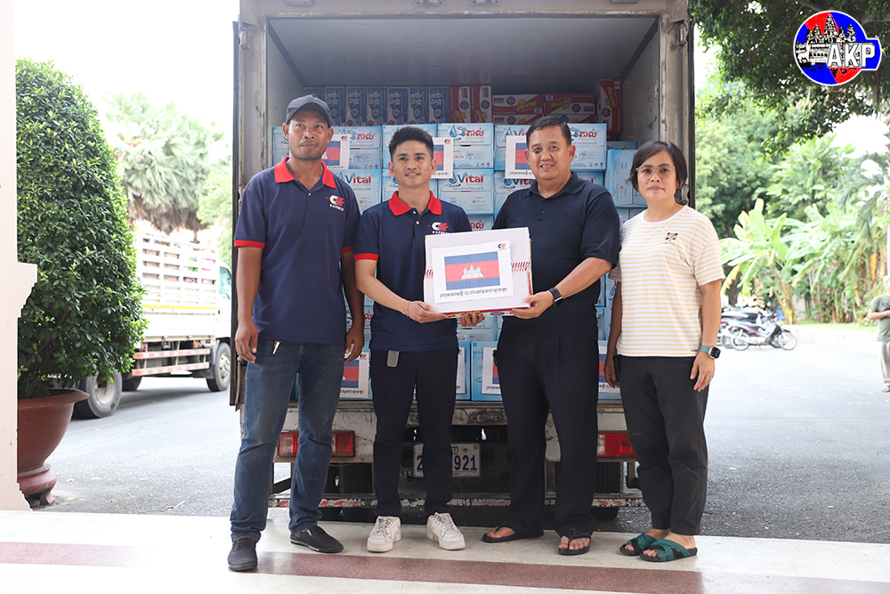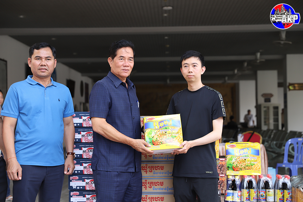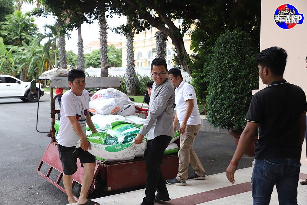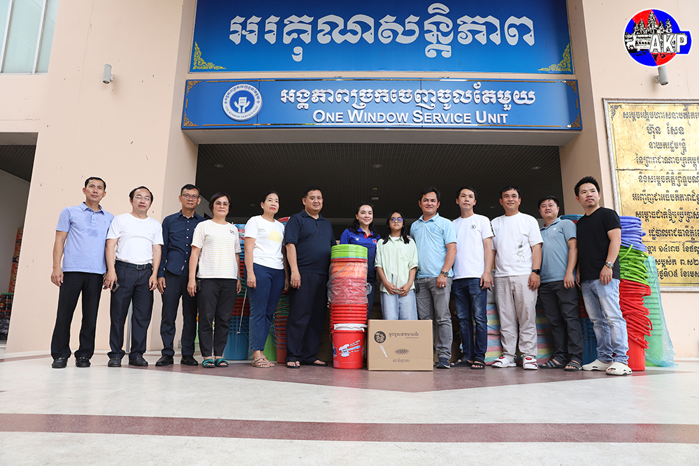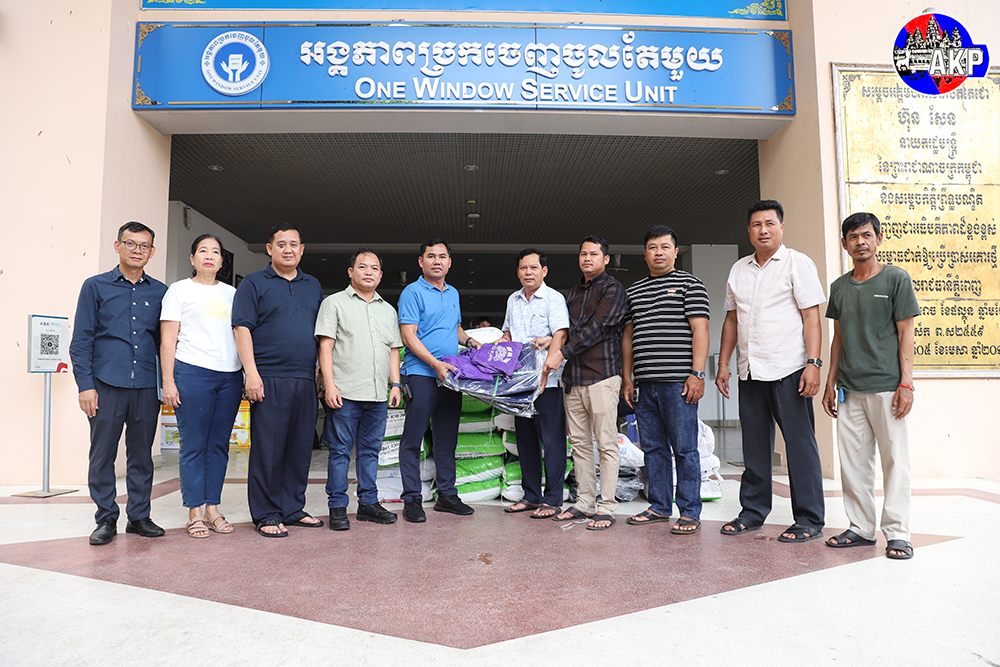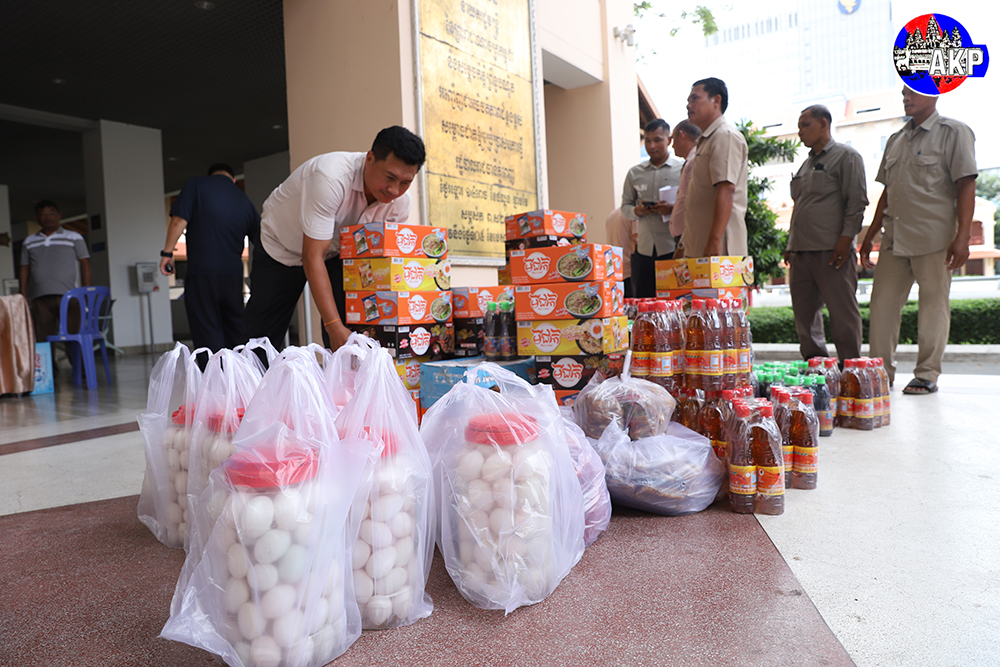 H.E. Khuong Sreng (C, Pic. 1), Phnom Penh Municipal Governor, receives funds, foodstuffs, medicine, and other necessities from Philanthropists to support and encourage the Cambodian frontline soldiers and displaced civilians, at the Municipal Hall this afternoon.