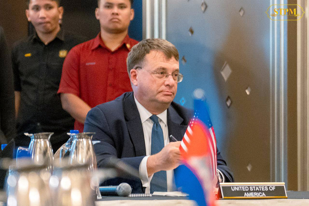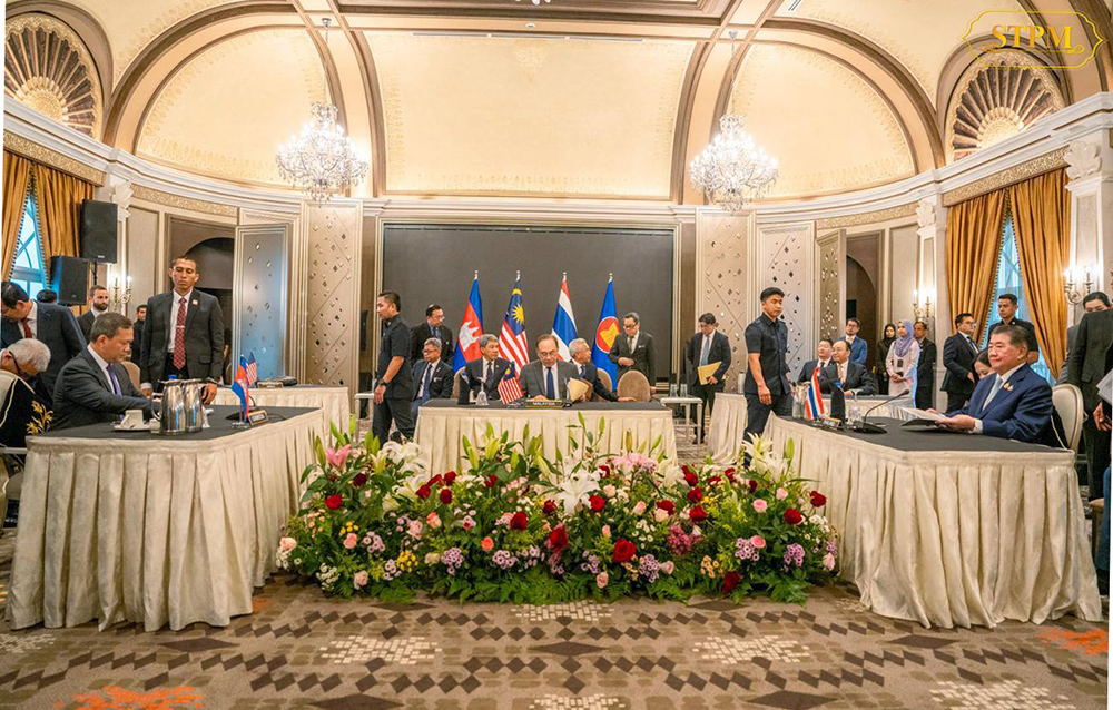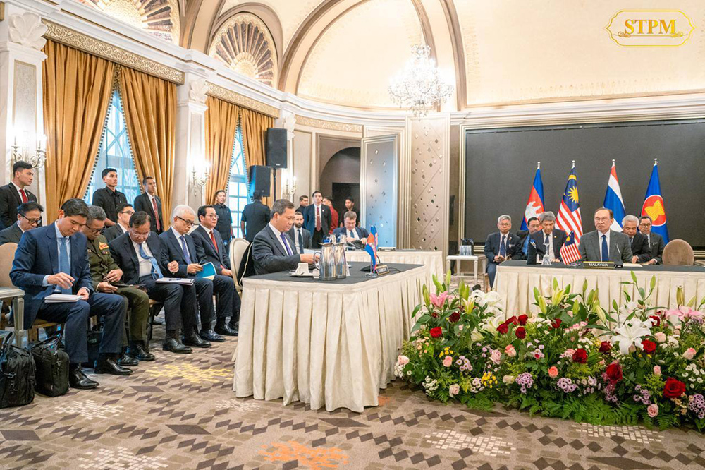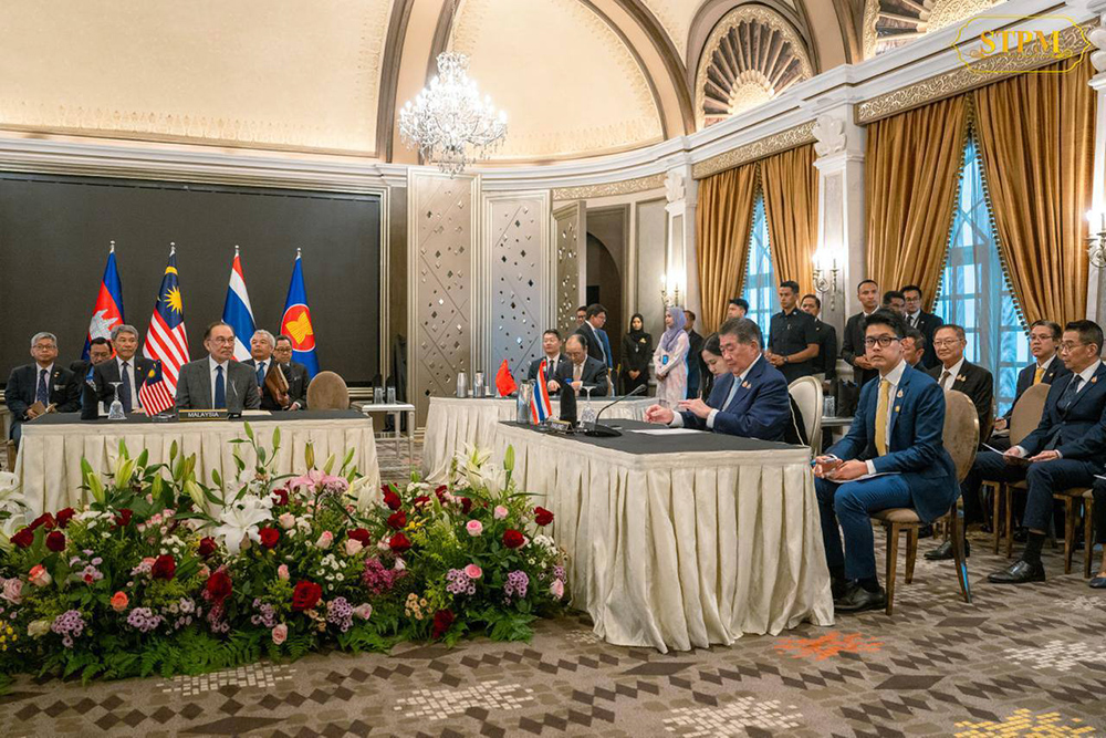 Samdech Moha Borvor Thipadei Hun Manet (Front L, Pic. 1), Prime Minister of the Kingdom of Cambodia, and Thai Acting Prime Minister H.E. Phumthan Wechayachai (Opposite, Pic. 1) hold their urgent ceasefire talks in Kuala Lumpur, Malaysia this afternoon, being hosted by Malaysian Prime Minister H.E. Dato’ Seri Anwar bin Ibrahim and attended by representatives from the United States and China.