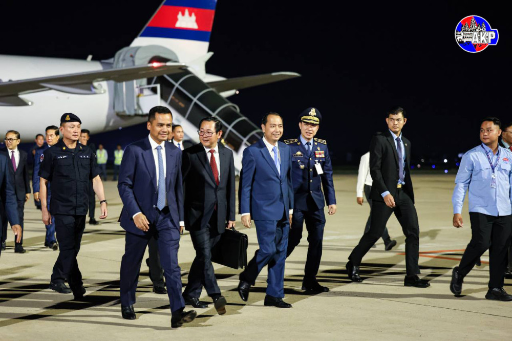 Samdech Moha Borvor Thipadei Hun Manet (Pic. 1), Prime Minister of the Kingdom of Cambodia, disembarks from a special aircraft at Phnom Penh International Airport this evening, upon his return from attending an urgent ceasefire meeting in Malaysia with great pride and outcomes.