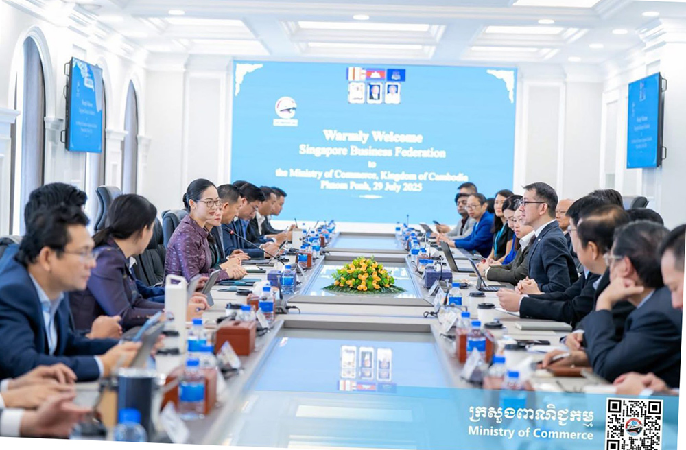 Cambodia’s Minister of Commerce, H.E. Mrs. Cham Nimul, met with a high-level delegation from the Singapore Business Federation (SBF) this morning to discuss strengthening bilateral trade and investment ties.