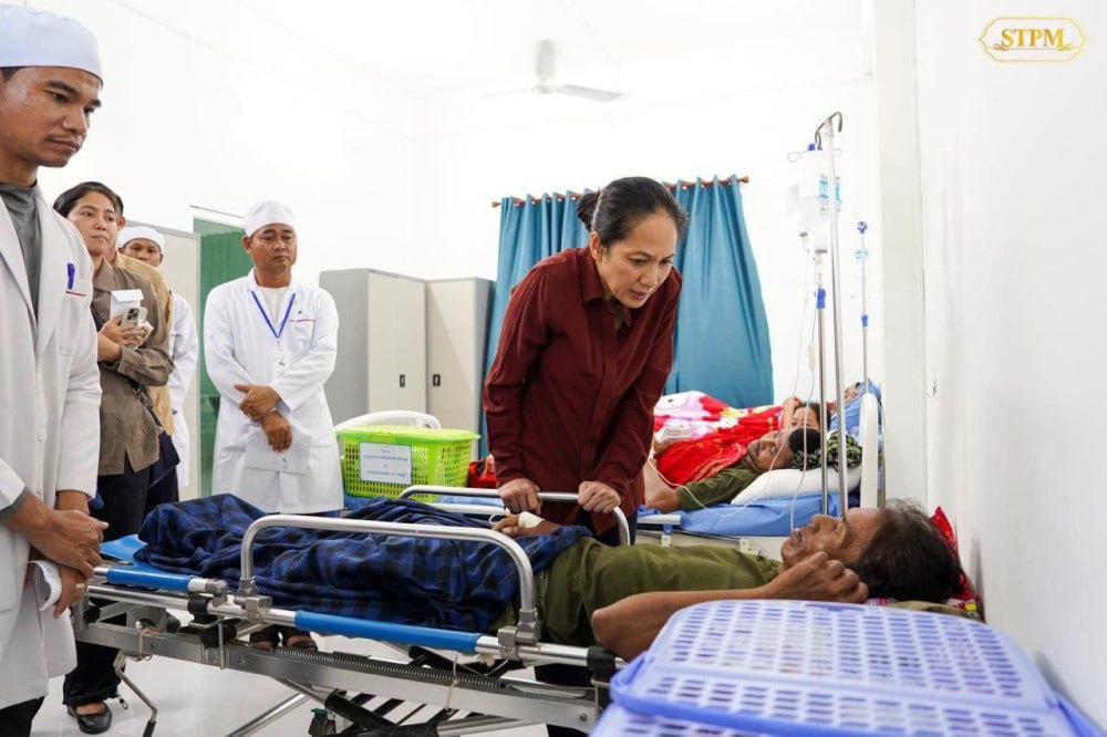 Earlier in the day, Lok Chumteav Dr. Pich Chanmony honored soldiers who sacrificed their lives in past border conflicts in Preah Vihear and Oddar Meanchey provinces. She also visited wounded soldiers at Kulen Hospital to express her sympathies and encouragement.