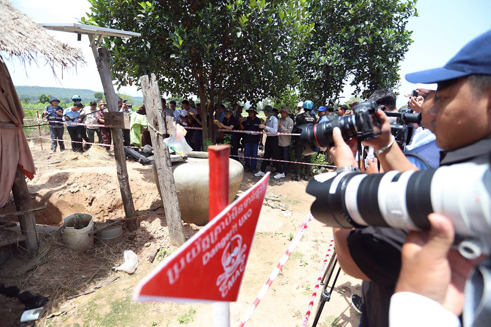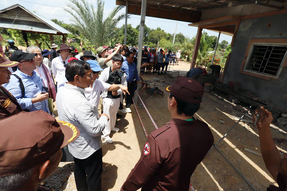 Cambodian Deputy Prime Minister and Minister of Foreign Affairs and International Cooperation H.E. Prak Sokhonn (C, Pic. 1) leads a delegation of heads of diplomatic mission to Cambodia to inspect the area affected by the armed clashes between Cambodian and Thai forces from July 24 to 28, 2025 in Thmar Daun village, Kouk Mon commune, Banteay Ampil district, Oddar Meanchey province on Aug. 1.