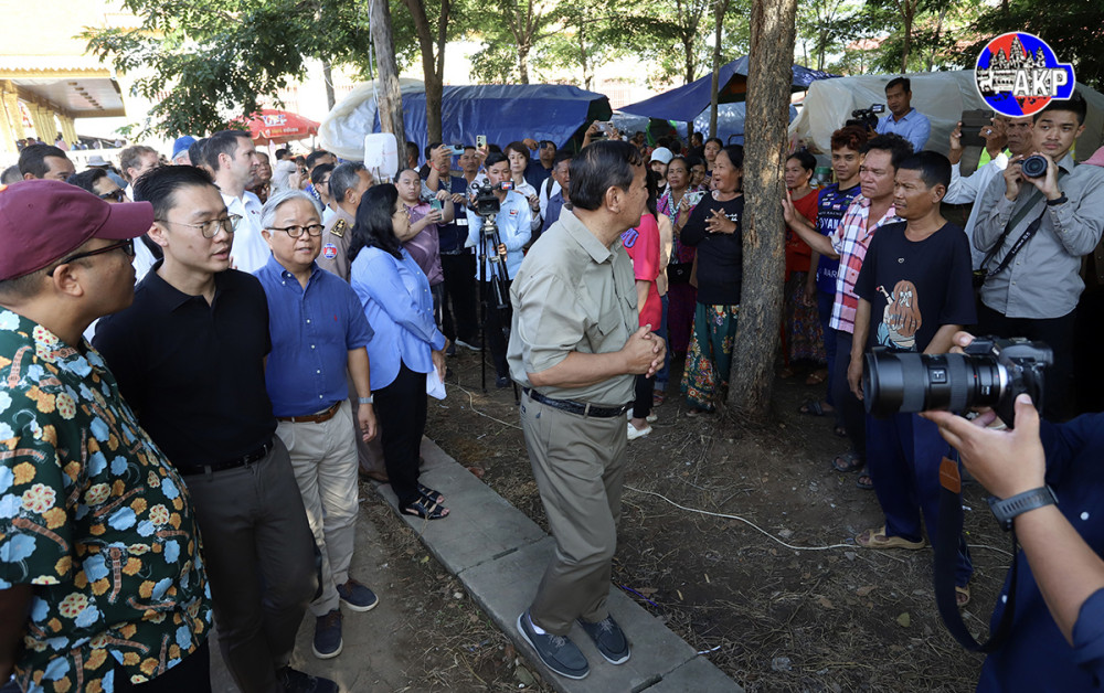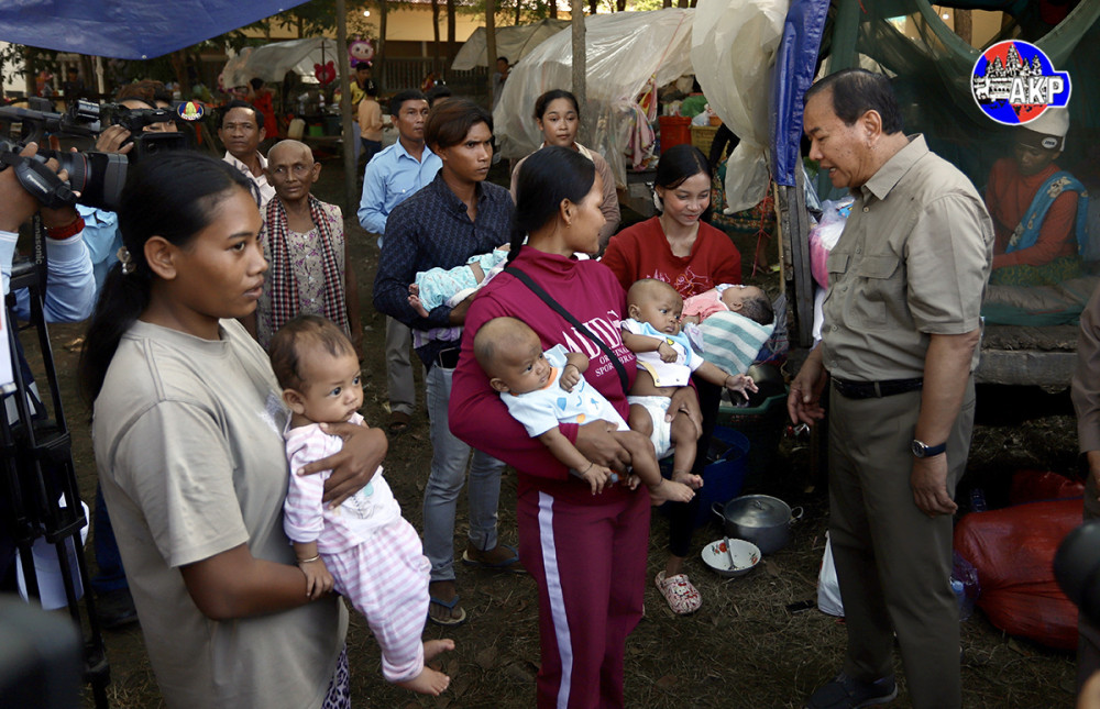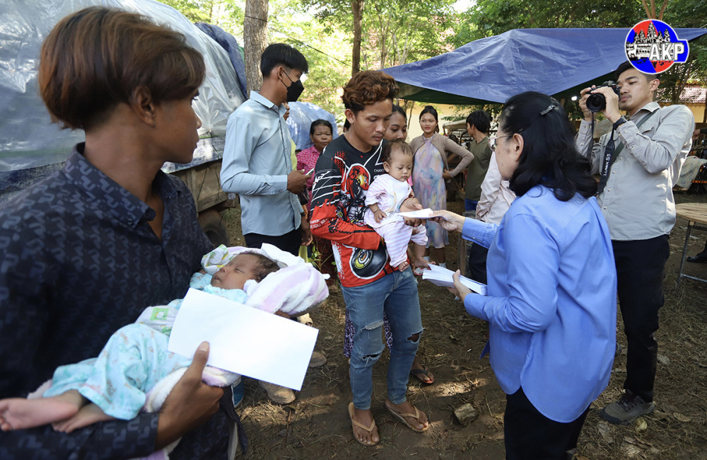 H.E. Prak Sokhonn (C, Pic. 1), Deputy Prime Minister and Minister of Foreign Affairs and International Cooperation, speaks to the displaced people while he was leading a delegation of foreign diplomatic missions accredited to Cambodia to inspect the situation of more than 1,000 displaced families temporarily sheltering at Prasat Banteay Srei Pagoda located in Banteay Srei village, Dam Dek commune, Sotr Nikum district, Siem Reap province this morning.
