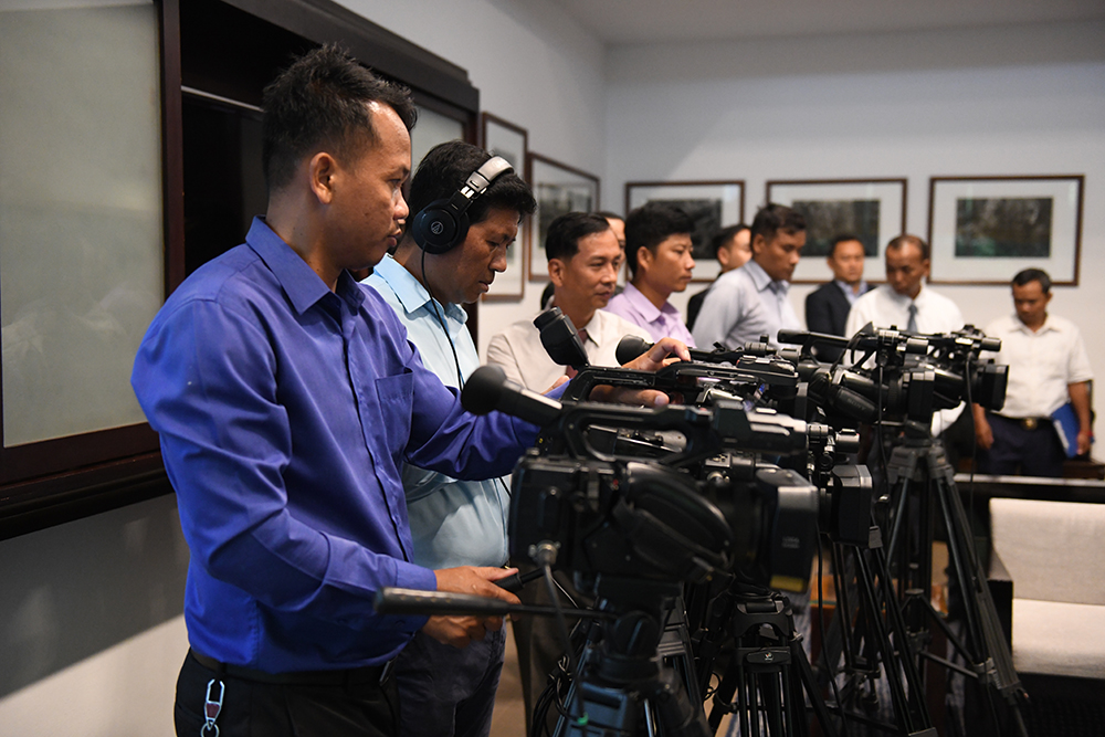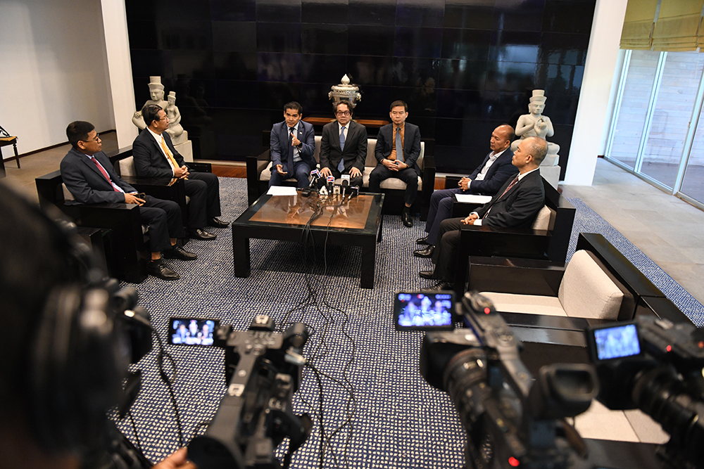 H.E. Leng Penglong (C, Pic 1), Secretary-General of the National Assembly (NA), and his colleagues hold a press conference on the outcomes of the participation of NA President Samdech Maha Rathsapheathika Thipadei Khuon Sudary in the 15th Summit of Women Speakers of Parliament and the 6th World Conference of Speakers of Parliament in Geneva, Switzerland, following her return at Phnom Penh International Airport this afternoon.