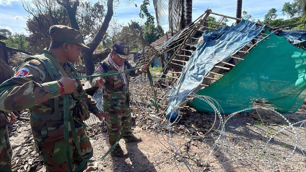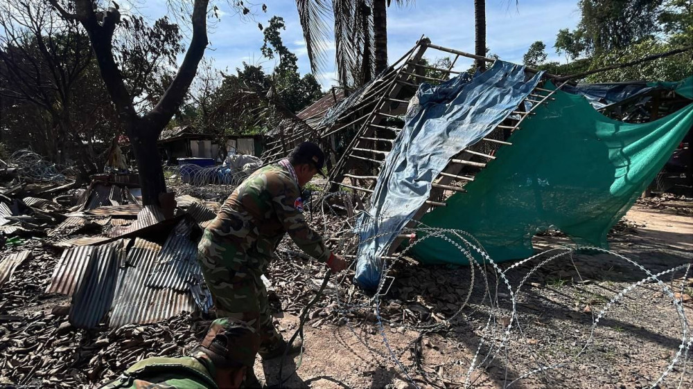 The barbed wire illegally installed by Thai forces in the Anseh area on Aug. 4, 2025, has been removed, and the accompanying machinery has ceased operations as of this afternoon.