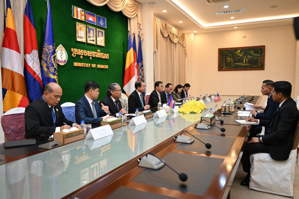H.E. Prof. Chheang Ra (R, Pic . 1), Minister of Health of Cambodia, greets H.E. Shaharuddin Onn, Ambassador of Malaysia to the Kingdom of Cambodia, prior to their meeting at the Ministry’s office here this morning.
