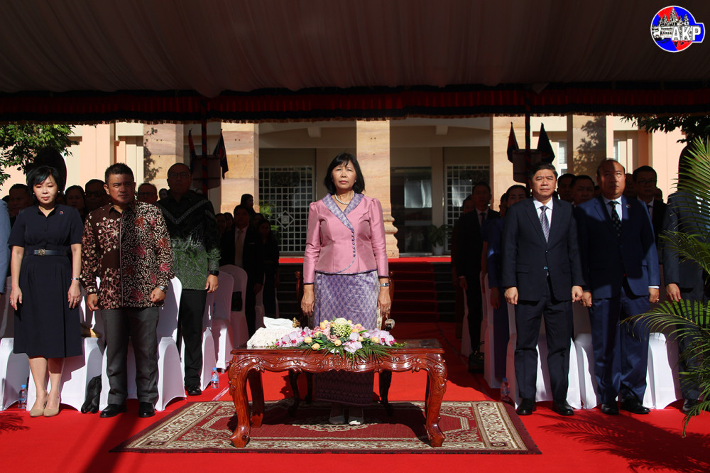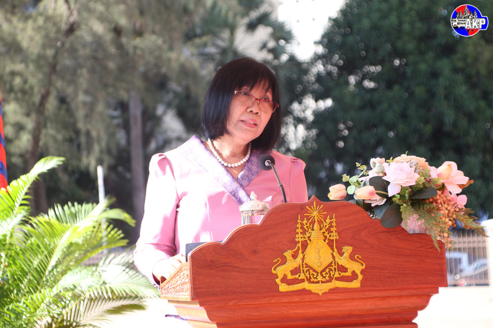 Permanent Secretary of State at the Ministry of Foreign Affairs and International Cooperation H.E. Ms. Eat Sophea (Pic. 1) delivers her remarks while she was presiding over the celebration of the 58th ASEAN Day, held at the ministry this morning with the participation of foreign ambassadors accredited to Cambodia.
