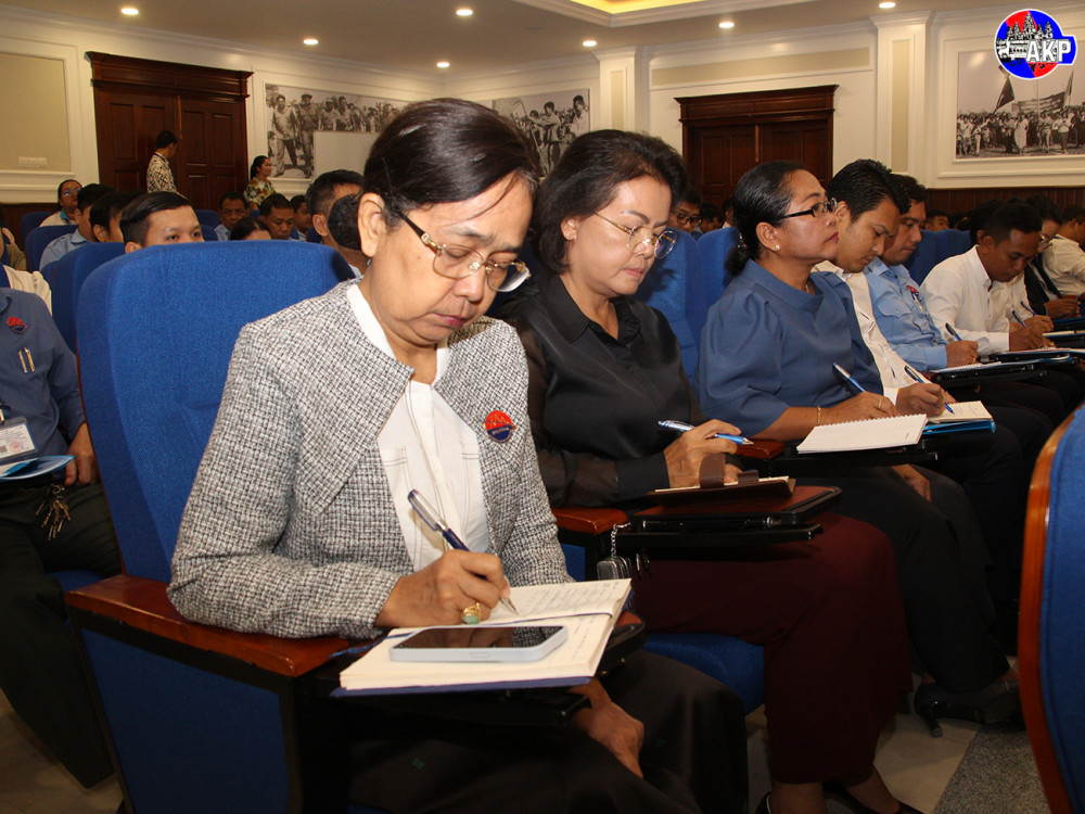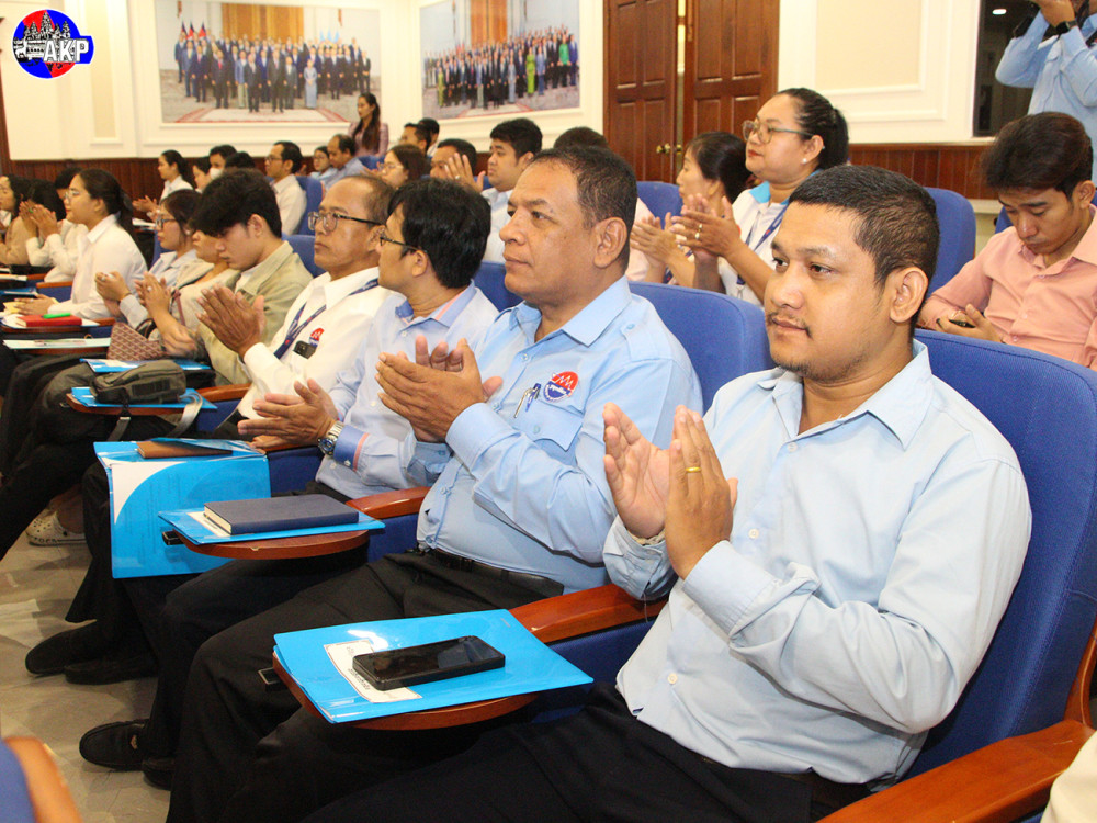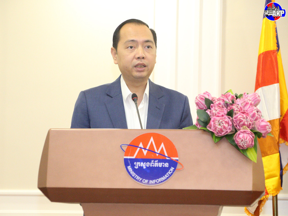 H.E. Neth Pheaktra (Pic. 1), Minister of Information, delivers his remarks while he was presiding over the opening ceremony of a training course on strengthening law enforcement and internal administrative management, organised at the Media Professional Training Centre of the Ministry in Phnom Penh this morning.