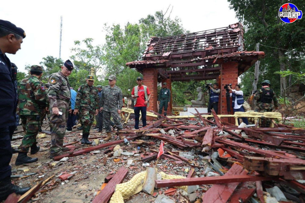 Buddhist monks and local officials in Oddar Meanchey province have accused the Thai military of deliberately destroying a sacred temple and targeting civilian facilities during cross-border hostilities between July 24 and 28.