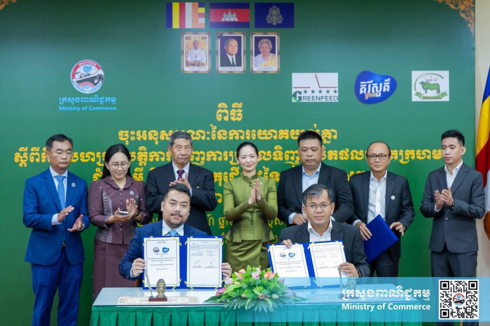Three animal feed production companies, namely Khmer Fresh Mill (KFM) Co., Ltd., GREENFEED Cambodia Co., Ltd. and Dangkhao Pang Animal Feed Enterprise, have entered into cooperation memorandums of understanding (MoUs) to purchase agricultural produce such as red maize, cassava, and other local raw materials for animal feed production.