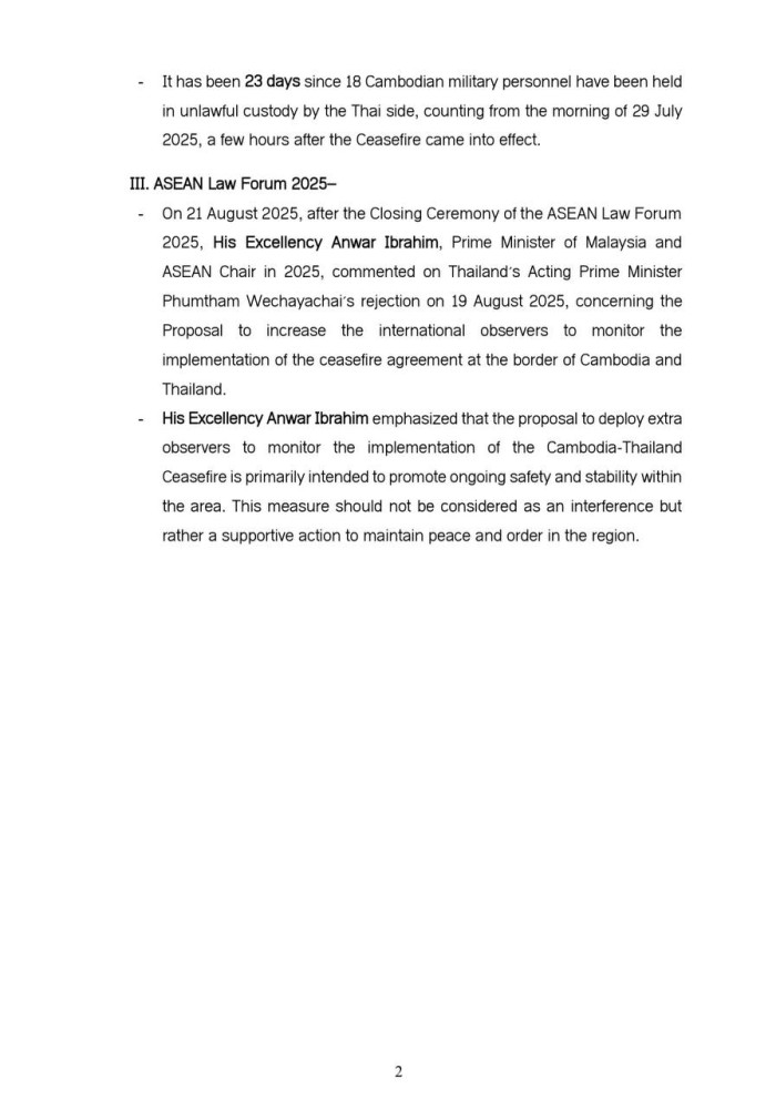 Updates on Situation along Cambodia-Thailand Border on Aug. 21