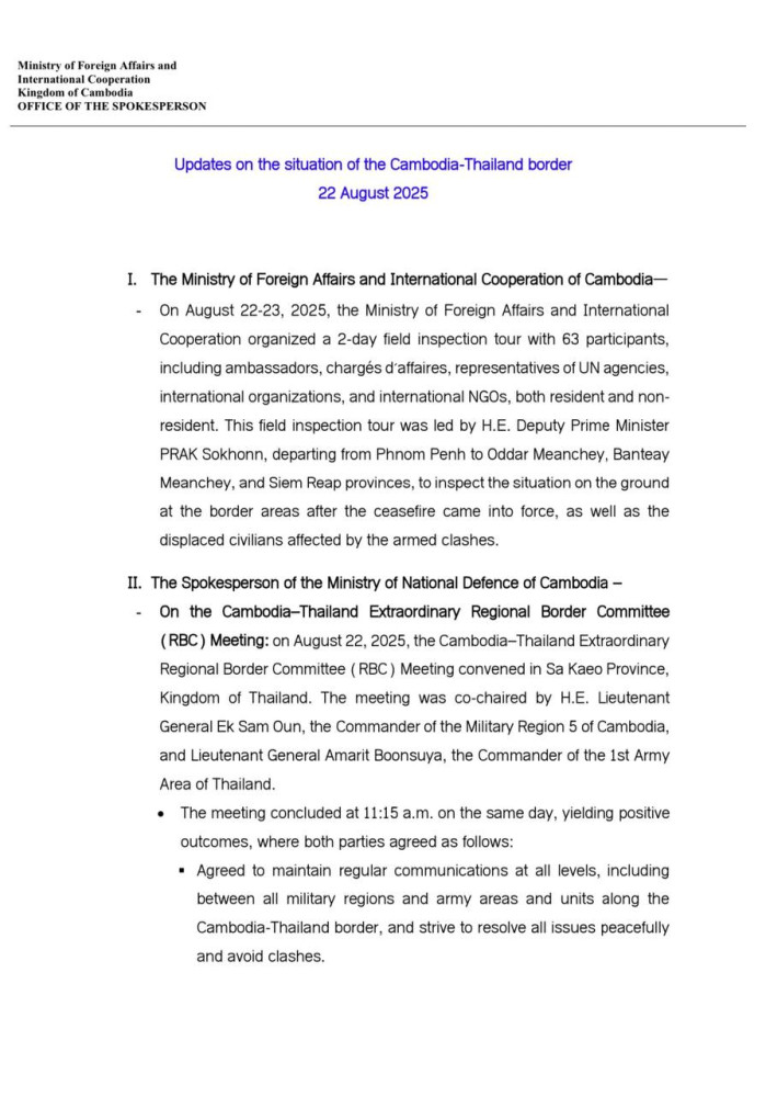 Updates on Situation along Cambodia-Thailand Border on Aug. 22, 2025