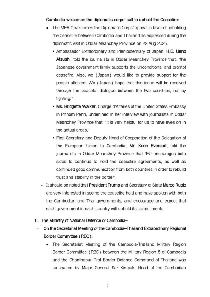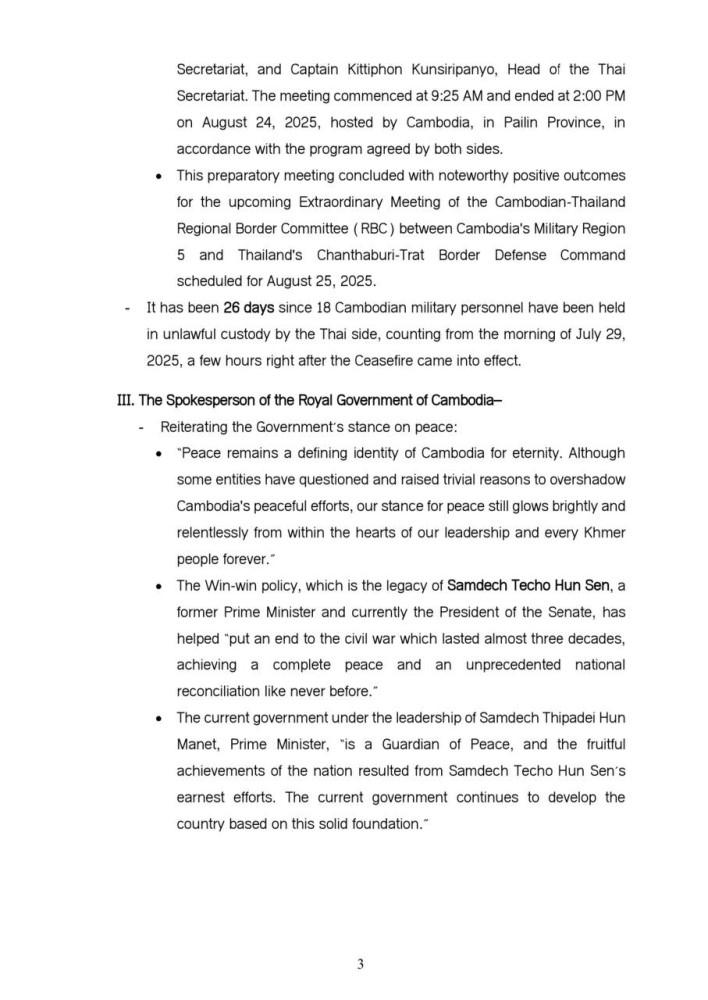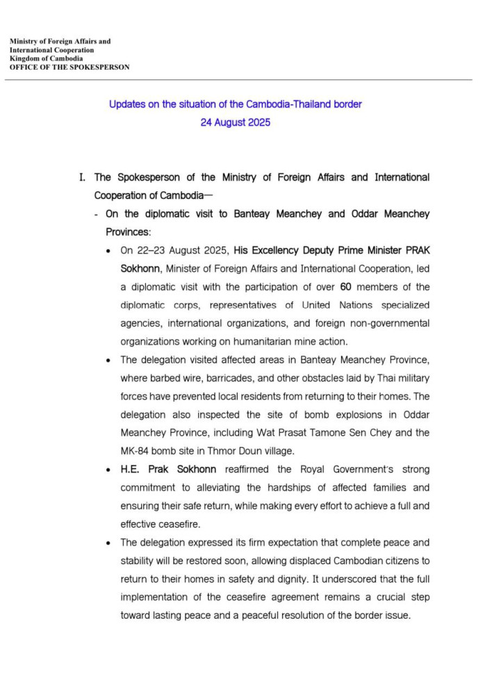 Updates on Situation along Cambodia-Thailand Border on Aug. 24