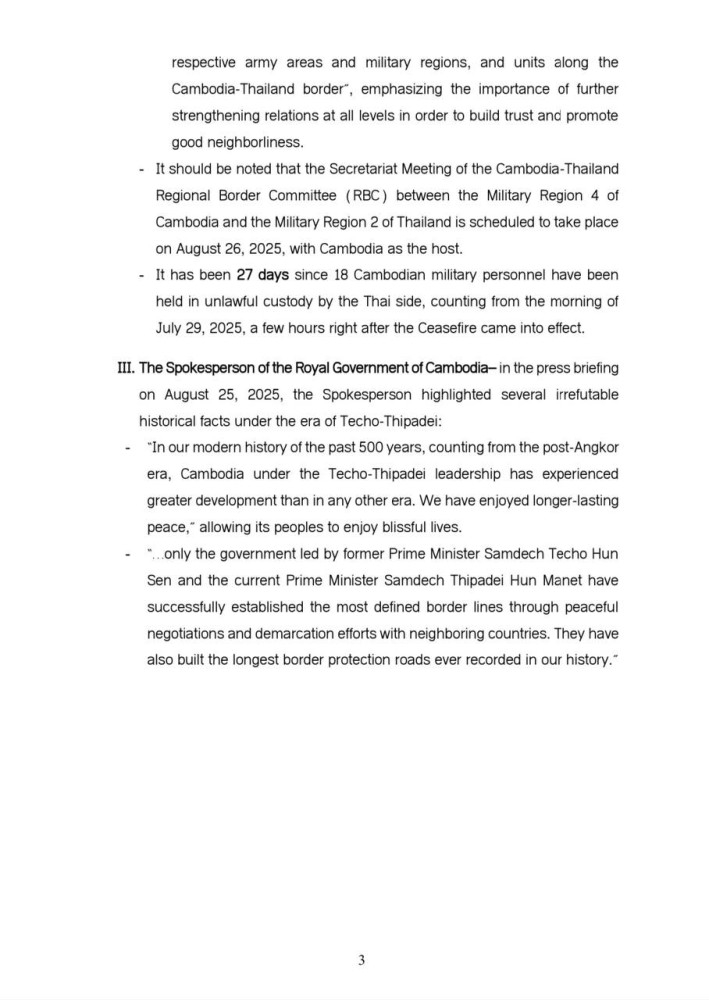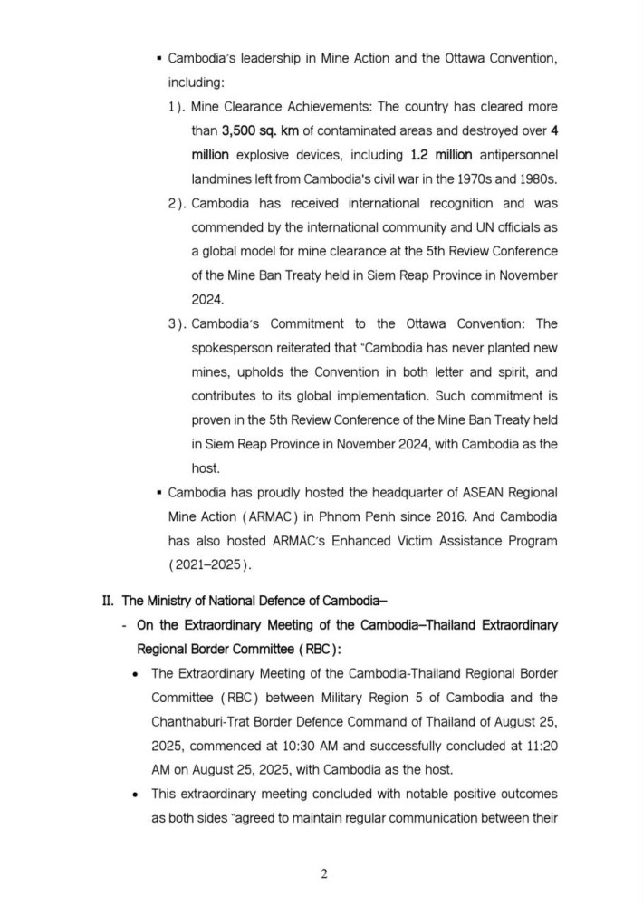 Updates on Situation along Cambodia-Thailand Border on Aug. 25