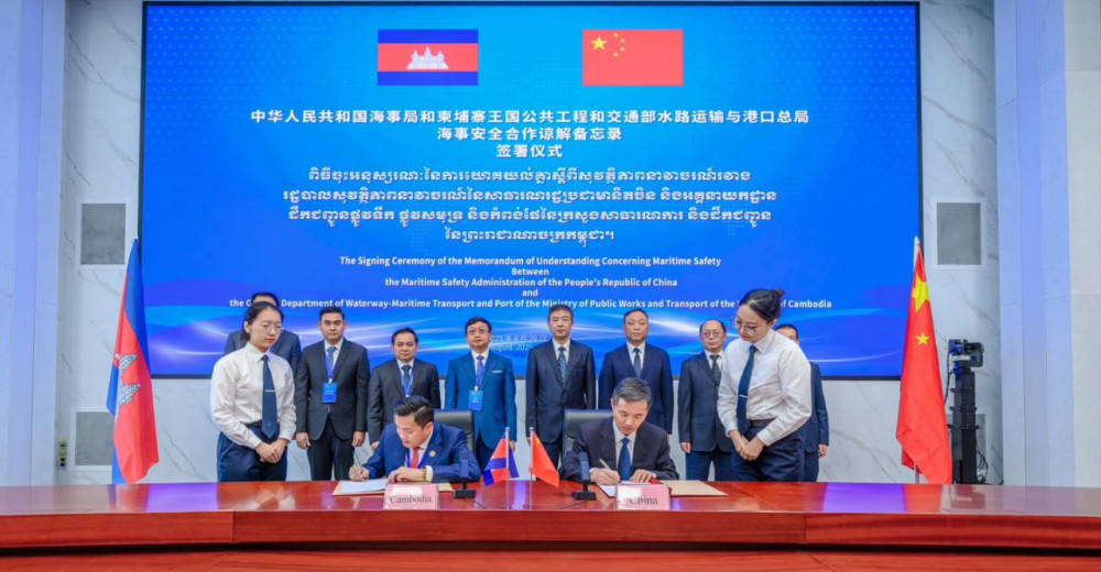 According to MPWT, H.E. Heng Suthy, Director General of the General Department of Waterway-Maritime Transport and Ports, signed the MoU with a representative of China’s Maritime Safety Administration.
