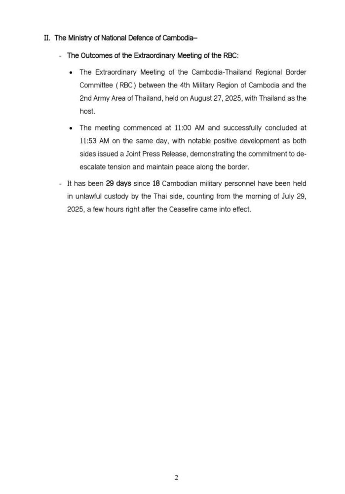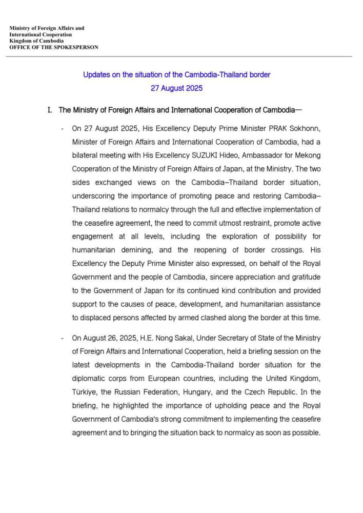 Updates on Situation along Cambodia-Thailand Border on Aug. 27