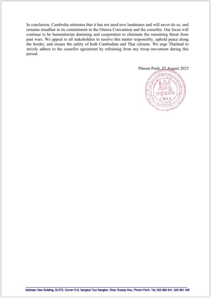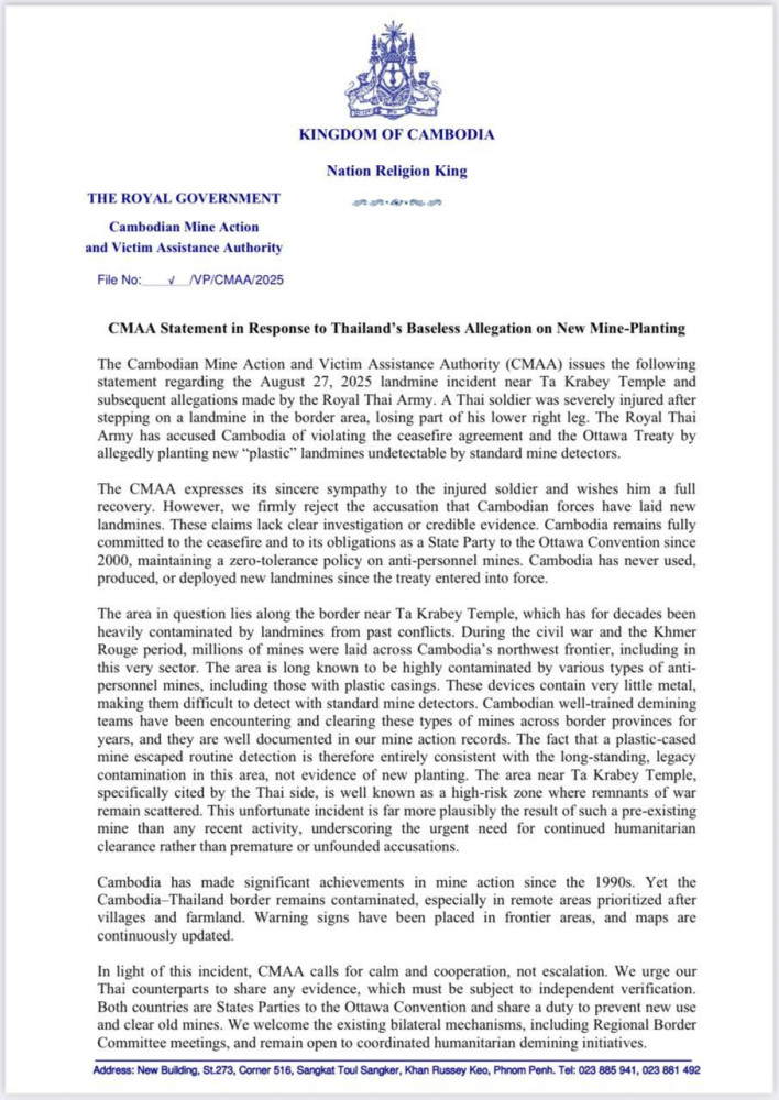 CMAA Statement in Response to Thailand's Baseless Allegation on New Mine-Planting