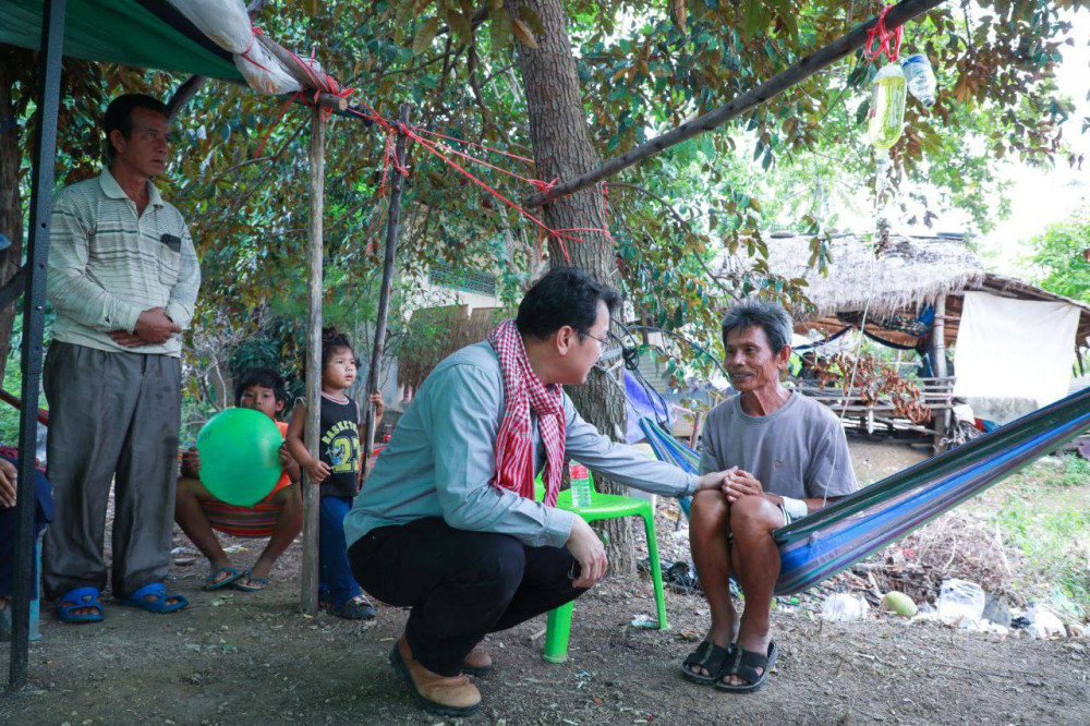 During the visit, H.E. Dith Tina spoke with the affected families, urging them to remain patient and have confidence in the Royal Government's efforts to resolve the situation.