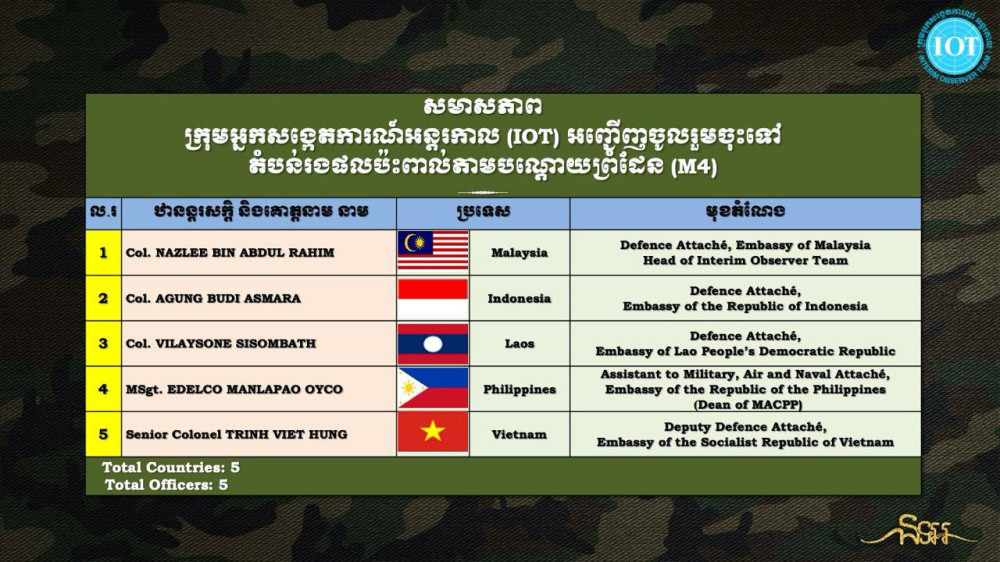 The IOT mission follows the outcomes of the Special Meeting held on July 28, 2025, in Putrajaya, Malaysia, as well as the Extraordinary Meeting of the Cambodia–Thailand General Border Committee (GBC) on Aug. 7, 2025 in Kualar Lumpur, Malaysia.