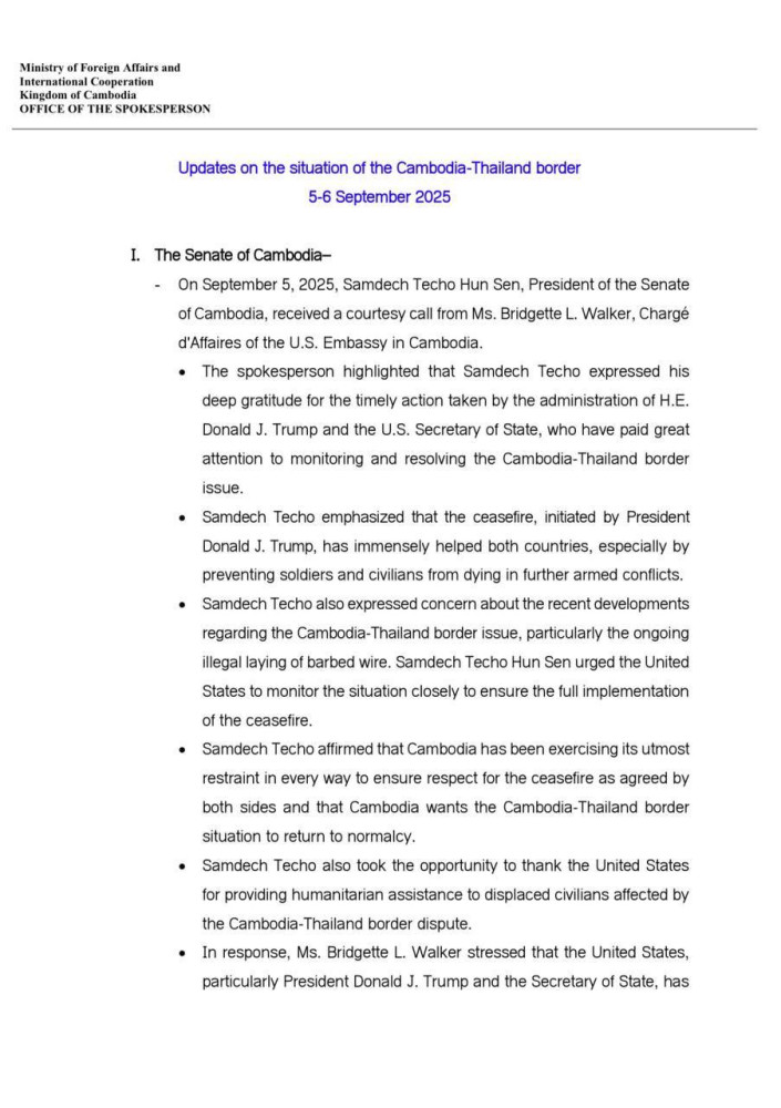 Updates on Situation along Cambodia-Thailand Border on Sept. 5-6, 2025