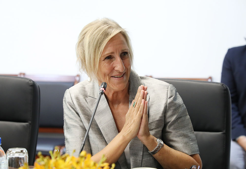 Hon. Lork Kheng — Chairwoman of the National Assembly Commission on Health, Social Affairs, Veterans, Youth Rehabilitation, Labor, Vocational Training and Women’s Affairs — discussed the programme on Friday with UNFPA Country Representative Ms. Sandra Bernklau and UN Women Country Programme Coordinator Ms. Khun Sopheary.
