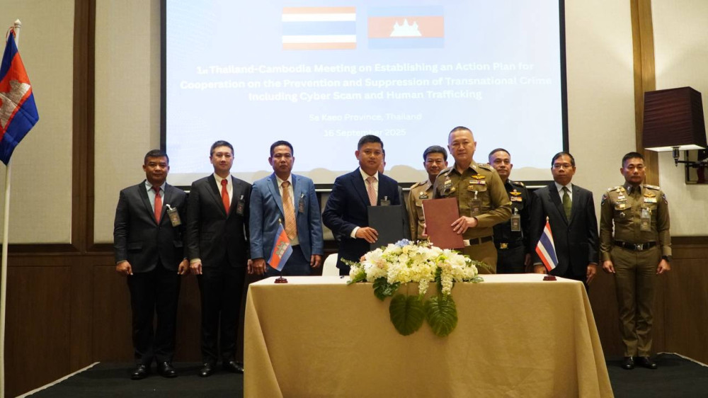 The agreement was reached during a meeting between the National Police of Cambodia and the Royal Thai Police in Sa Kaeo province, Thailand, on Sept. 16. The Cambodian delegation was led by H.E. Lt. Gen. Seang Thearith, Deputy Commissioner-General of the National Police, while the Thai side was headed by Pol. Gen. Thatchai Pitaneelaboot, Senior Inspector-General of the Royal Thai Police.