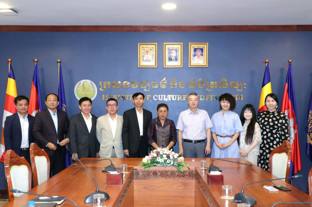 Cambodian Minister of Culture and Fine Arts, H.E. Dr. Phoeurng Sackona, has met with a delegation from Art Exhibition China to discuss cultural cooperation.