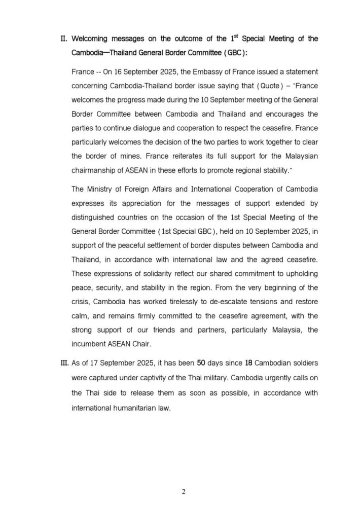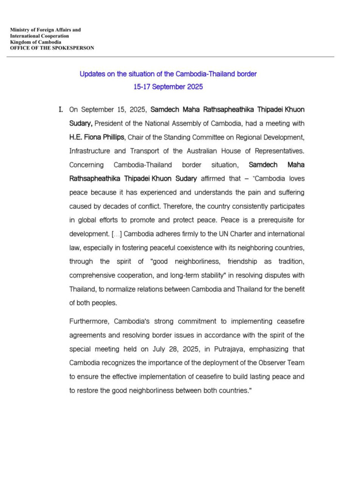 Updates on Situation along Cambodia-Thailand Border on Sept. 15-17, 2025
