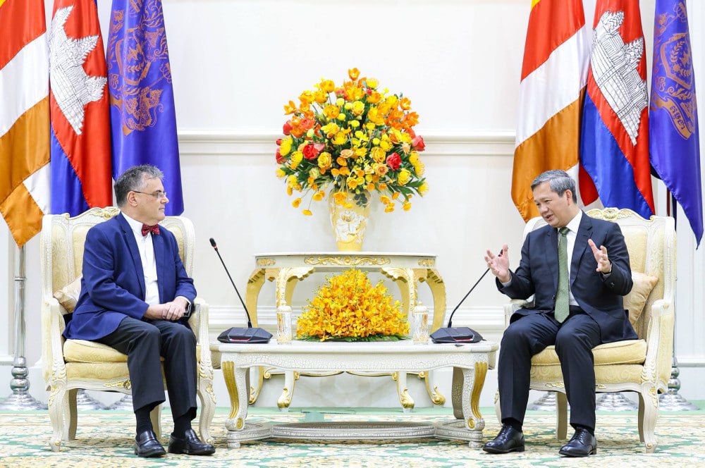 The pledge was made during a courtesy meeting between Cambodian Prime Minister Samdech Moha Borvor Thipadei Hun Manet and French Ambassador H.E. Olivier Richard at the Peace Palace in Phnom Penh this morning.