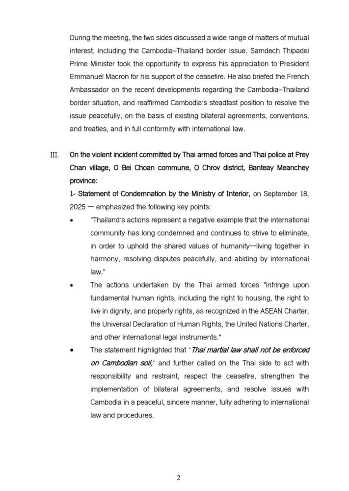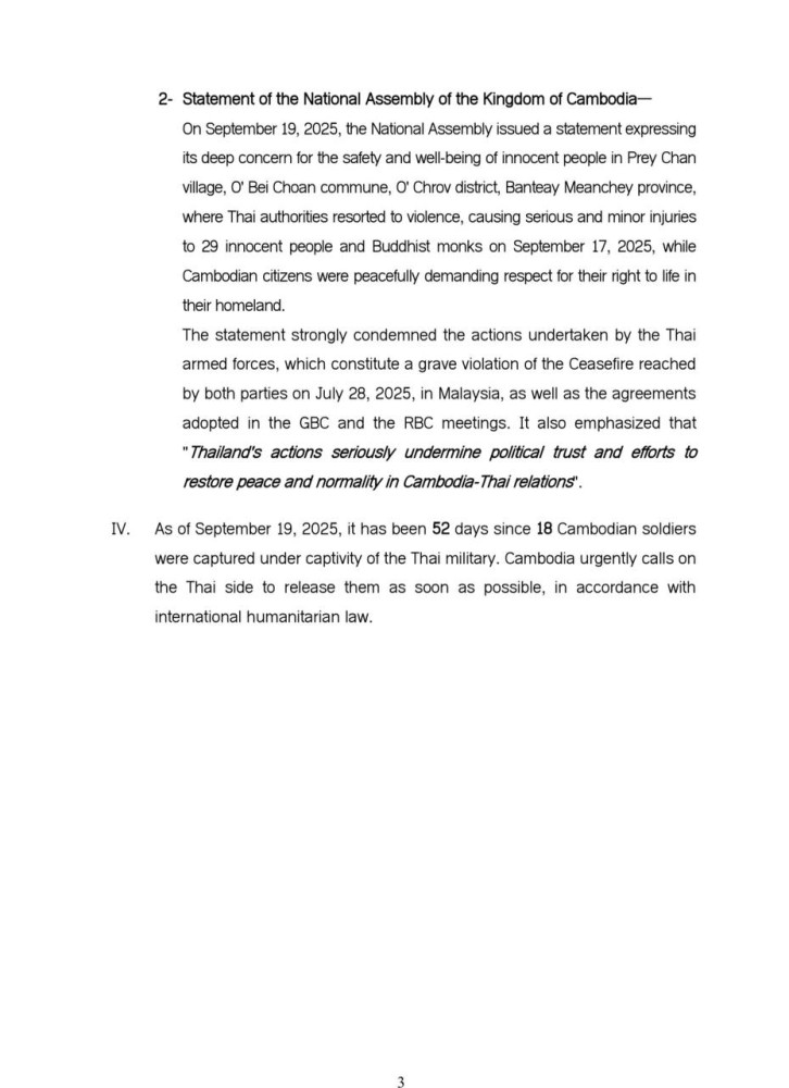 Updates on Situation along Cambodia-Thailand Border Sept. 18-19, 2025